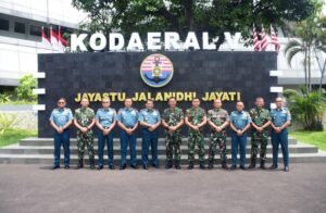 TNI AL, Dispen Kormar, Kolatmar (Surabaya) – Komandan Komando Latihan Marinir (Dankolatmar) Brigjen TNI (Mar) Agus Dwi Laksana Putra melaksanakan Courtesy Call kepada Komandan Komando Daerah TNI Angkatan Laut V (Dankodaeral V) Laksamana Muda TNI Ali Triswanto, S.E., M.Si., bertempat di Mako Kodaeral V, Surabaya. Senin (24/11/2025).