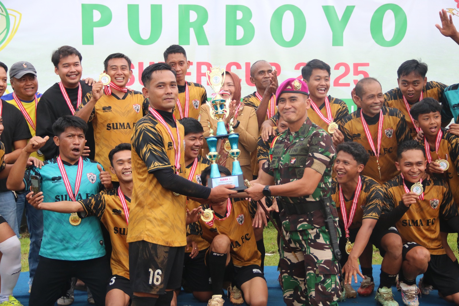 Dispen Kormar (Malang). Danpuslatpurmar 4 Purboyo secara resmi menutup turnamen sepak bola Purboyo Super Cup dalam rangka memeriahkan HUT Korps Marinir Ke 80 Tahun 2025 di lapangan sepak bola Puslatpurmar 4 Purboyo Malang Selatan, Senin ( 24/11/2025 ).
