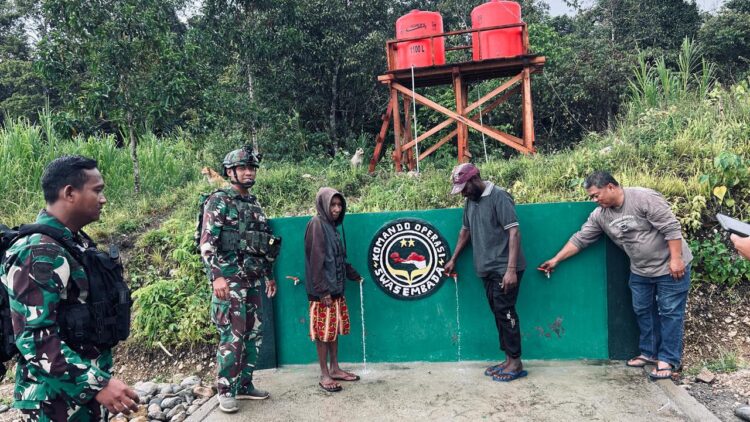 Kampung Kutdol, Pegunungan Bintang — TNI melalui Program TNI Manunggal Air membangun dan menyerahkan penampungan air bersih bagi warga Kampung Kutdol, sebagai solusi keterbatasan akses air terutama pada musim kemarau. Program ini menyasar kampung-kampung di sekitar Pos Okpol yang kerap terkendala pasokan air, agar kebutuhan harian—mulai dari konsumsi, kebersihan, hingga sanitasi—lebih terjamin.(Senin,24/11/2025).