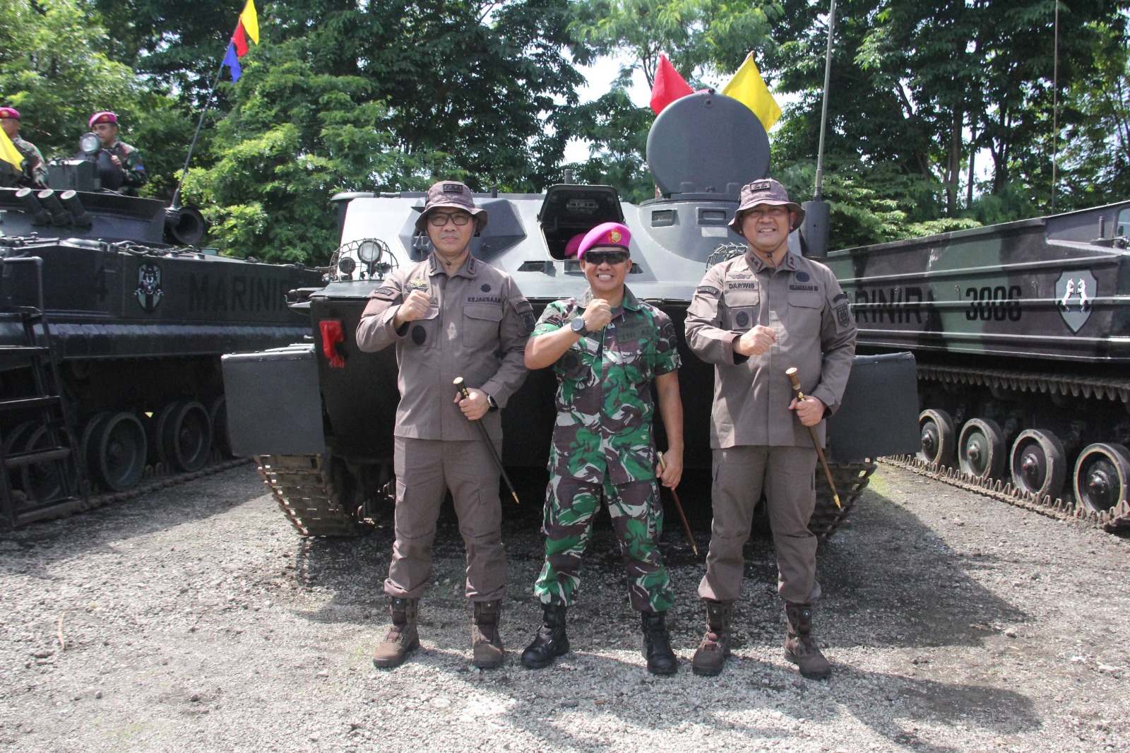 TNI Angkatan Laut, Dispen Kormar (Surabaya). Komandan Resimen Kavaleri 2 Marinir (Danmenkav 2 Mar) Kolonel Mar La Ode Jimmy Herizal Rachman, M.Tr.Hanla., M.M., sebagai penanggungjawab acara, menyaksikan menyematkan Brevet kehormatan Kavaleri Marinir kepada Kepala Kejaksaan Tinggi (Kajati) dan Wakajati Jawa Timur di Lapangan tembak Marines Sport Center, Kesatrian Marinir Sutedi Senaputra Karangpilang, Surabaya. Selasa (25/11/2025).