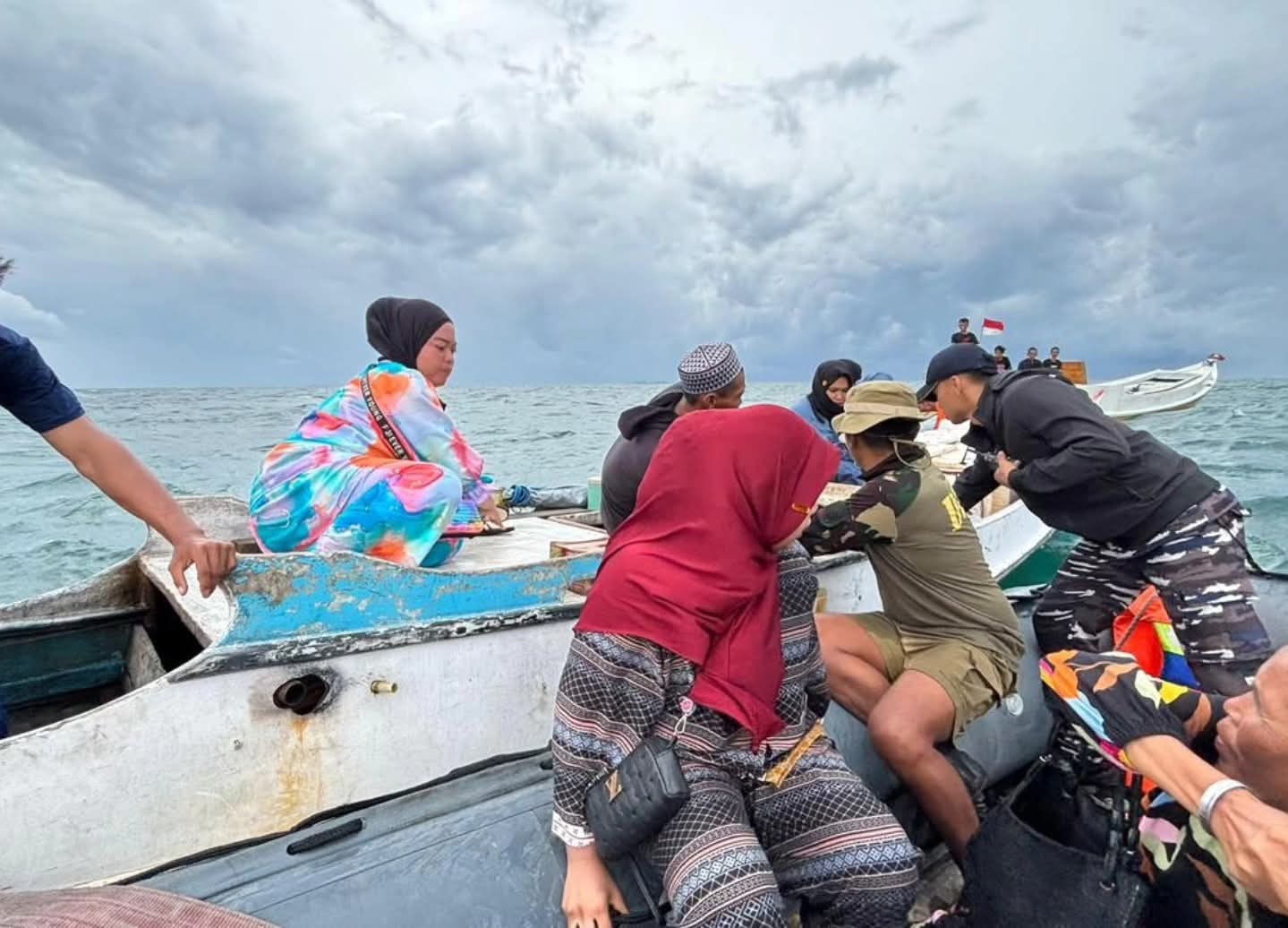 Dengan pertimbangan keselamatan, Komandan KRI Hiu-634 memutuskan untuk mengevakuasi lima penumpang ke kapal perang tersebut. Setiba di atas KRI Hiu-634, seluruh penumpang langsung mendapatkan pengecekan kesehatan, pemberian selimut hangat, serta bantuan logistik.