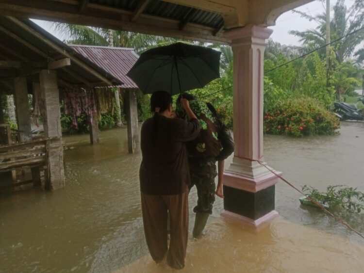 Akibat Batang Ulakan Tapakis meluap dan merendam pemukiman warga Nagari Kampung Galapung, Kecamatan Ulakan Tapakis. Babinsa koramil 07/PK Kodim 0308/Padang Pariaman Sertu Erry bersama tim gabungan dan relawan setempat, turun ke lapangan untuk memastikan keselamatan warga.