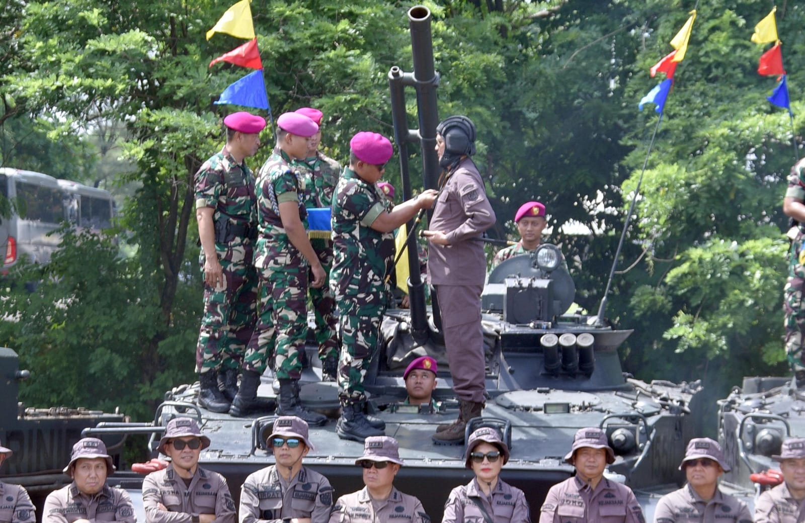 Dalam rangkaian safari pembekalan hukum kepada Prajurit Pasmar 2, didampingi oleh Danpasmar 2, Kajati Jatim beserta jajaran menerima teori mengemudikan Tank Amphibi dilanjutkan tour facility dan mempratekkan langsung, pengalaman mengemudikan kendaraan tempur BMP-3F, dilanjutkan dengan penyematan brevet Kavaleri Marinir dan penyerahan sertifikat brevet oleh Danpasmar 2 kepada Kajati Jatim.