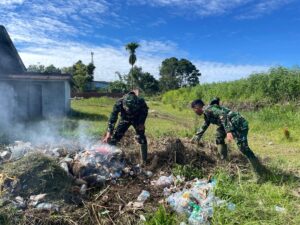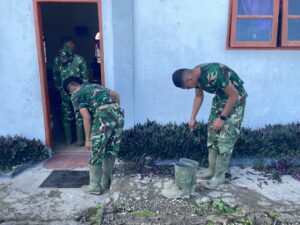 Dairi, — Sebanyak 30 personel Batalyon Infanteri Teritorial Pembangunan (Yonif TP) 908/Gaja Dompak yang dipimpin Serda Joshua Tambunan menggelar kegiatan karya bakti dengan bergotong royong membersihkan rumah ibadah di Gereja HKBP Sidiangkat, Kecamatan Sidikalang, Kabupaten Dairi, Sabtu (29/11/2025). Kegiatan sosial ini dilaksanakan bersama warga jemaat serta pengurus gereja, menggambarkan solidaritas dan kepedulian terhadap tempat ibadah sebagai ruang publik yang harus senantiasa dijaga.