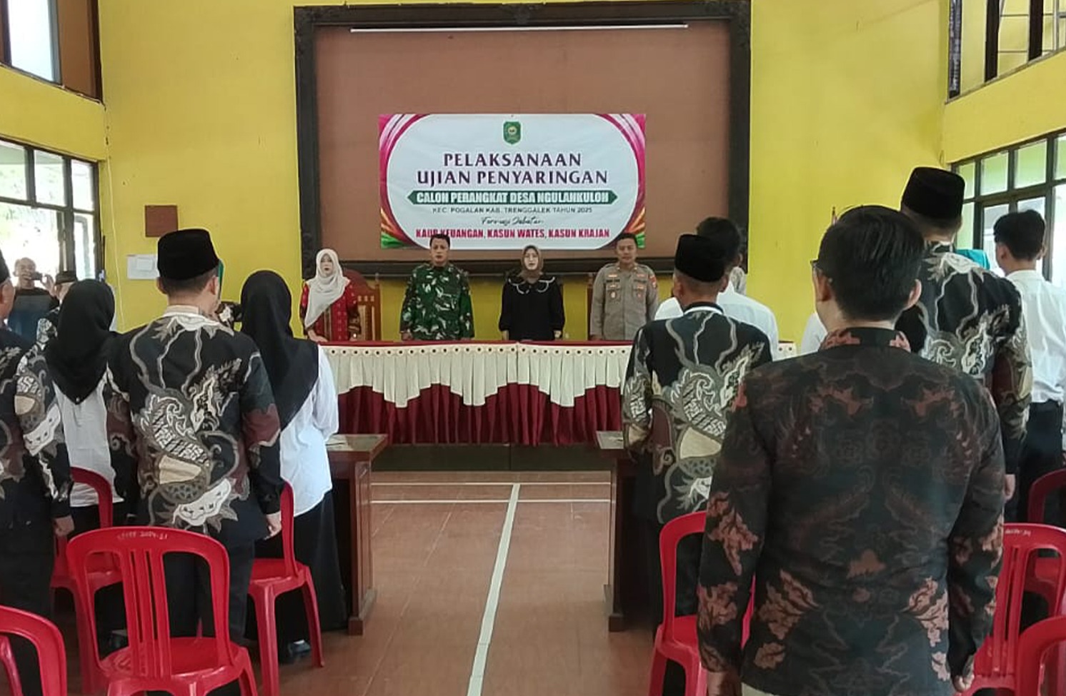 Trenggalek – Sinergitas TNI–Polri dalam memperkuat tata kelola pemerintahan desa kembali terlihat di Kabupaten Trenggalek. Hal ini tampak dalam pengawalan proses Ujian Pengisian Perangkat Desa Ngulan Kulon, Kecamatan Pogalan, yang digelar di Aula Balai Desa Ngulan Kulon, Senin (1/12/2025). Tiga unsur Muspika, Danramil 0806-02/Pogalan Kapten Inf Teguh Sasongko, Kapolsek Pogalan Iptu Henri Agus S., S.Sos., serta Camat Pogalan Dilly Dwi Kurniasari, S.STP., M.A.P., hadir secara langsung untuk memastikan proses seleksi berjalan transparan.