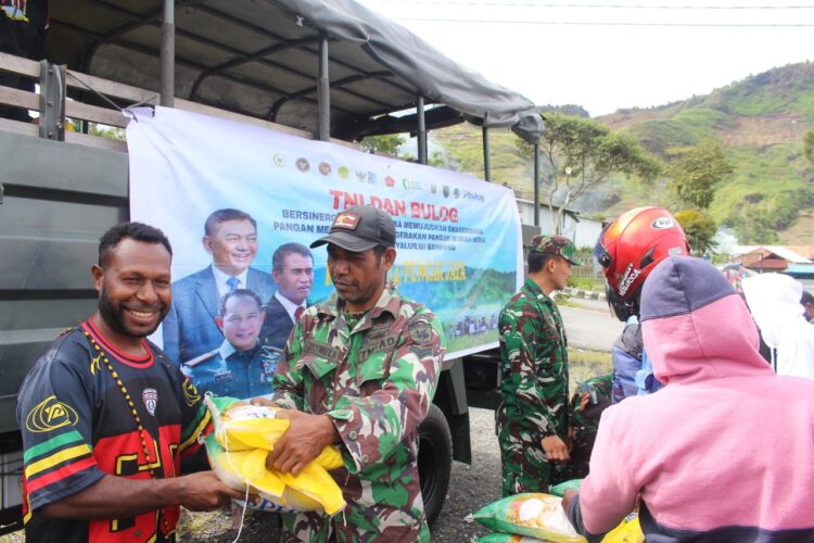 Mulia – Kodim 1714/Puncak Jaya melaksanakan kegiatan Gerakan Pangan Murah sebagai bentuk kepedulian kepada masyarakat. Kegiatan ini merupakan sinergitas antara Kodim 1714/Puncak Jaya dengan Bulog dalam mendukung stabilitas pasokan dan harga pangan, khususnya beras.