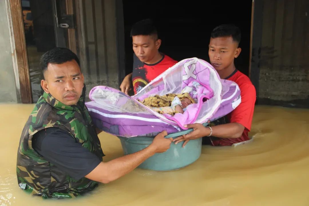 Salah satu momen paling menyentuh terjadi ketika prajurit Marinir menemukan seorang bayi yang diletakkan keluarganya di dalam baskom plastik agar tidak terseret arus. Dengan sangat hati-hati, prajurit mengangkat baskom tersebut beserta alas tidur kecil di dalamnya, memastikan bayi tetap kering meski air mencapai dada prajurit. Pemandangan tersebut menjadi bukti bahwa keselamatan warga tetap menjadi prioritas utama dalam setiap operasi.
