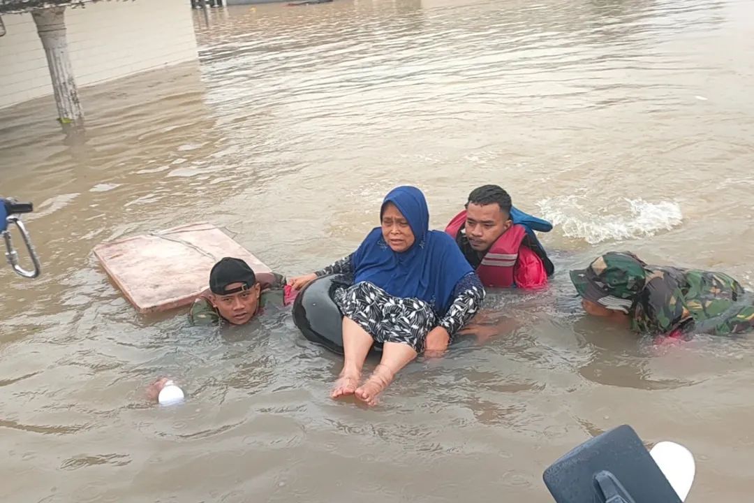 Di salah satu lokasi, prajurit Marinir mengevakuasi seorang nenek yang terjebak di dalam rumah saat air meningkat dengan cepat. Menggunakan papan kayu sebagai alas darurat, prajurit memastikan korban berada di posisi aman sebelum dipindahkan ke perahu karet. Situasi ini menunjukkan betapa tingginya risiko yang dihadapi warga ketika banjir datang secara mendadak.
