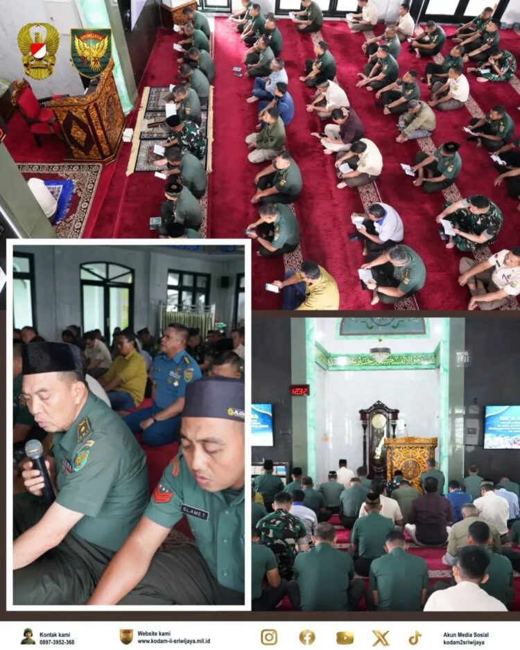 Kodam II/Sriwijaya menggelar kegiatan Doa Bersama lintas agama untuk korban bencana alam banjir bandang dan tanah longsor di Aceh, Sumatera Utara, dan Sumatera Barat, Rabu (03/12/2025). Kegiatan ini dilaksanakan secara serentak oleh seluruh Prajurit, PNS, dan keluarga besar TNI AD.