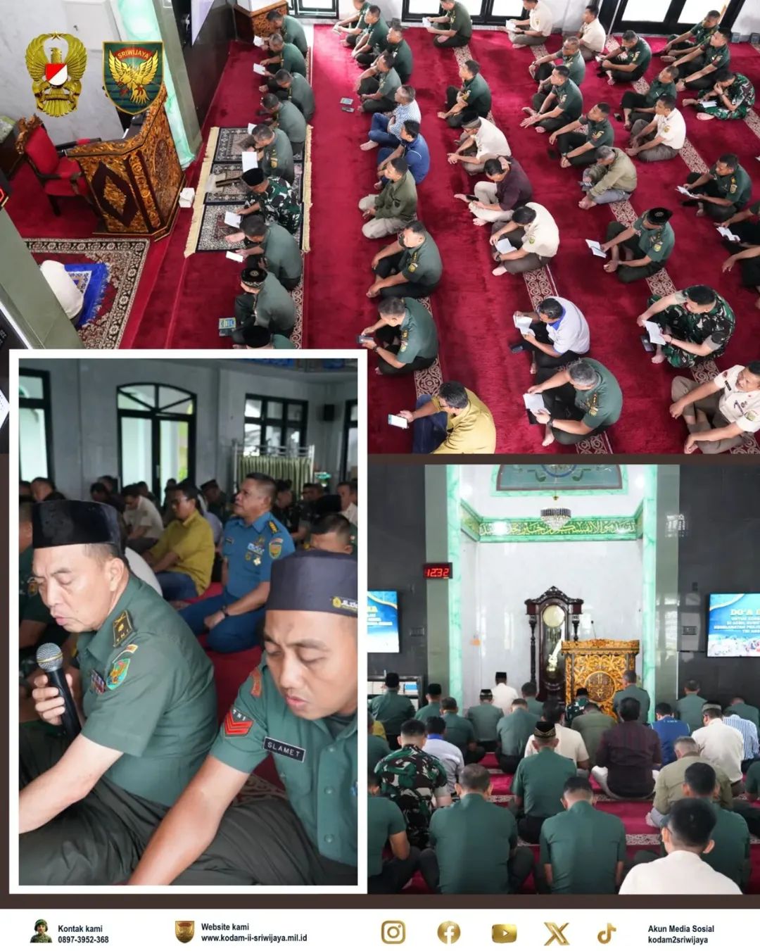 Bagi Prajurit, PNS dan Persit yang beragama Islam, Doa Bersama ini dilaksanakan di Masjid Raudhatul ‘Ulum Makodam II/Swj. Bagi yang beragama Kristen dilaksanakan di Aula Bintaljarahdam II/Swj. Sedangkan bagi Prajurit dan PNS yang beragama Hindu Doa Bersama dilaksanakan di Pure Agung Seduduk Putih, Palembang.