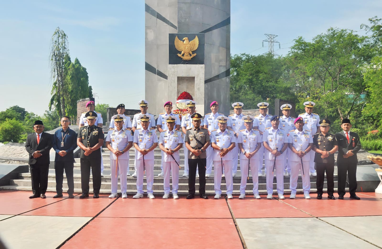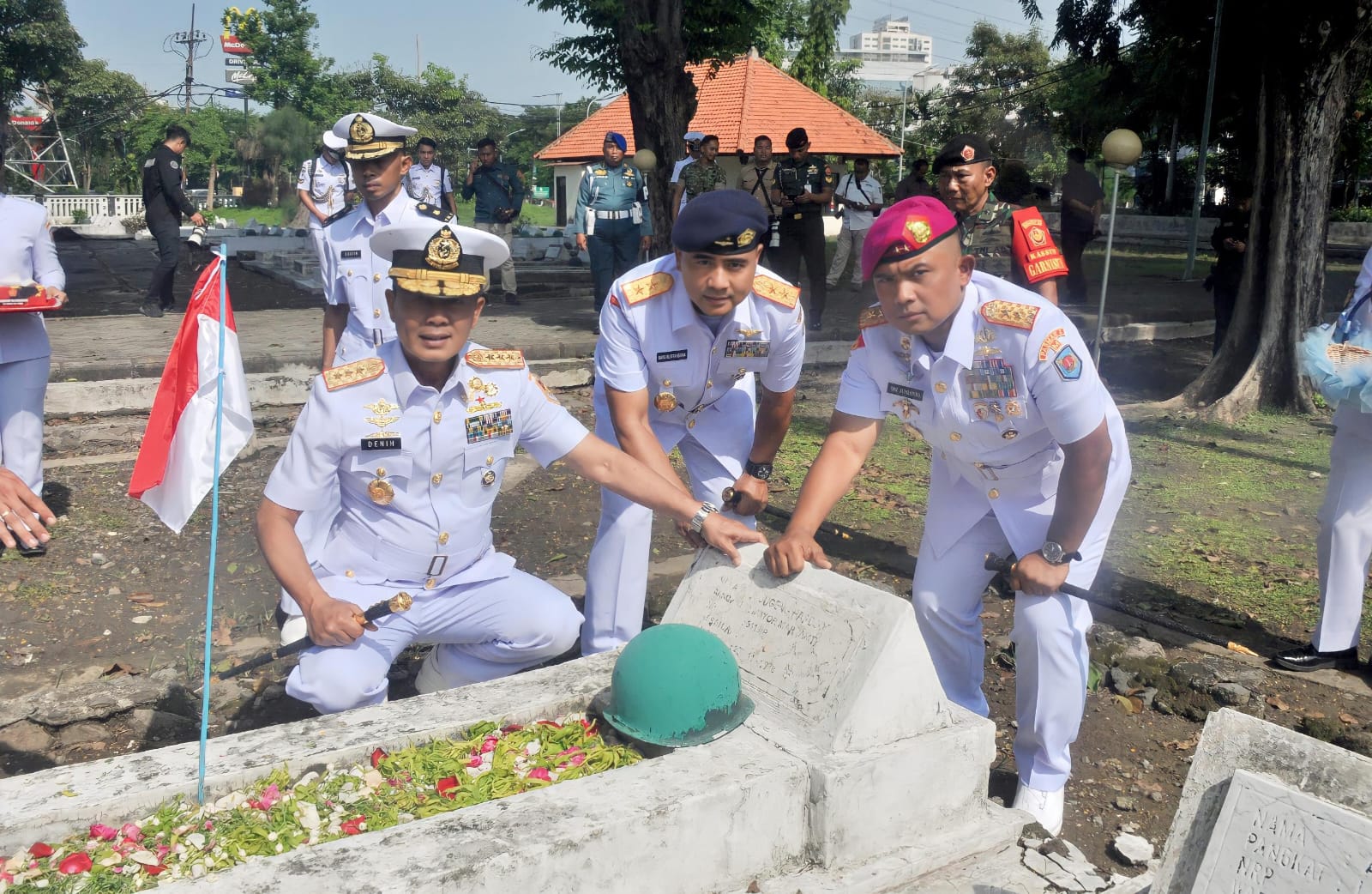 Dispen Kormar TNI AL (Surabaya). Menjelang peringatan Hari Ulang Tahun (HUT) ke-80 Armada Republik Indonesia tahun 2025, Danpasmar 2 Mayor Jenderal TNI (Mar) Dr. Oni Junianto, didampingi Ketua Korcab Pasmar 2 Gabungan Jalasenastri Korps Marinir Ny. Dian Oni Junianto mengikuti Ziarah Rombongan dalam rangka memperingati Hari Armada Republik Indonesia tahun 2025 di Taman Makam Pahlawan Sepuluh November Surabaya. Selasa (02/12)
