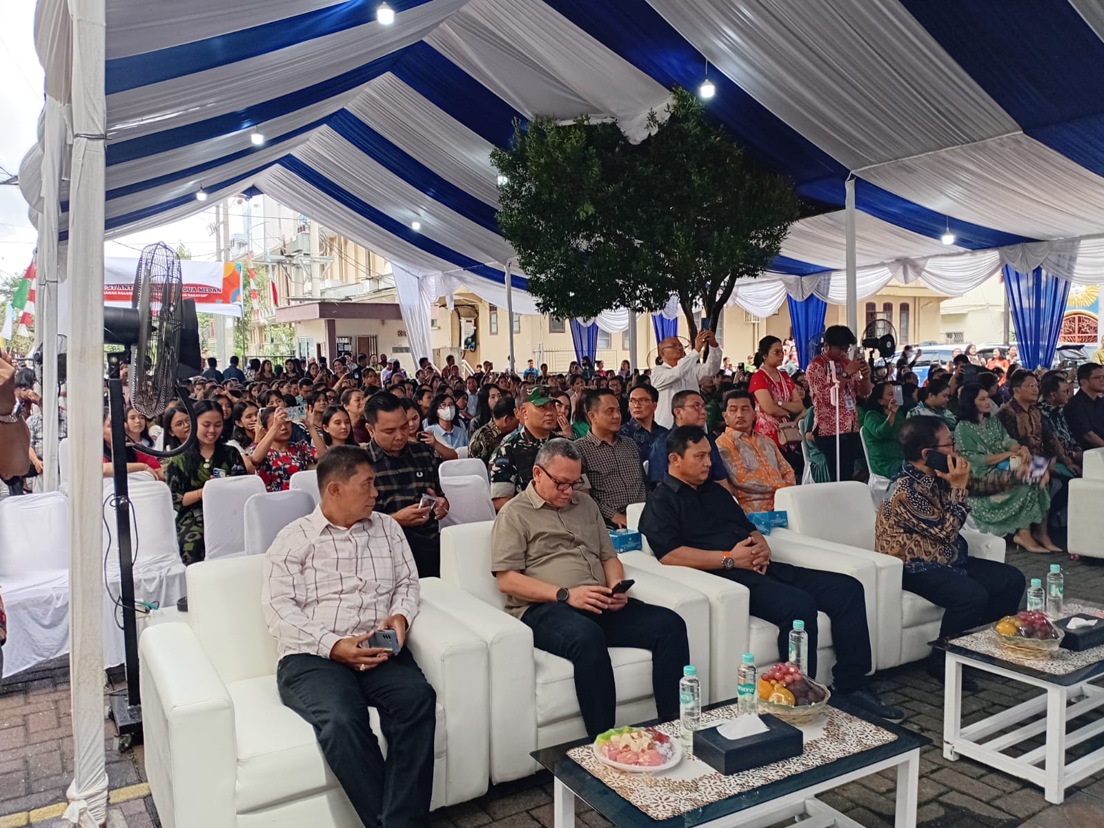 Kegiatan Safari Natal juga dihadiri Camat Medan Baru Bpk Frans S Siahaan S.STP. Msp, Danramil 0201-05/ MB Kapten Inf Sabur Utomo, jajaran Lurah dan ASN Se-Kecamatan Medan Baru serta seluruh Kepala Lingkungan se-Kecamatan Medan Baru.(05/MB)