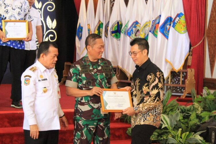 Jambi – Danrem 042/Gapu Brigjen TNI Heri Purwanto, S.E., M.Sc., menghadiri acara Penyerahan Penghargaan Keselamatan dan Kesehatan Kerja (K3) bagi perusahaan-perusahaan di Provinsi Jambi, bertempat di Auditorium Rumah Dinas Gubernur Jambi, Rabu (10/12/2025)