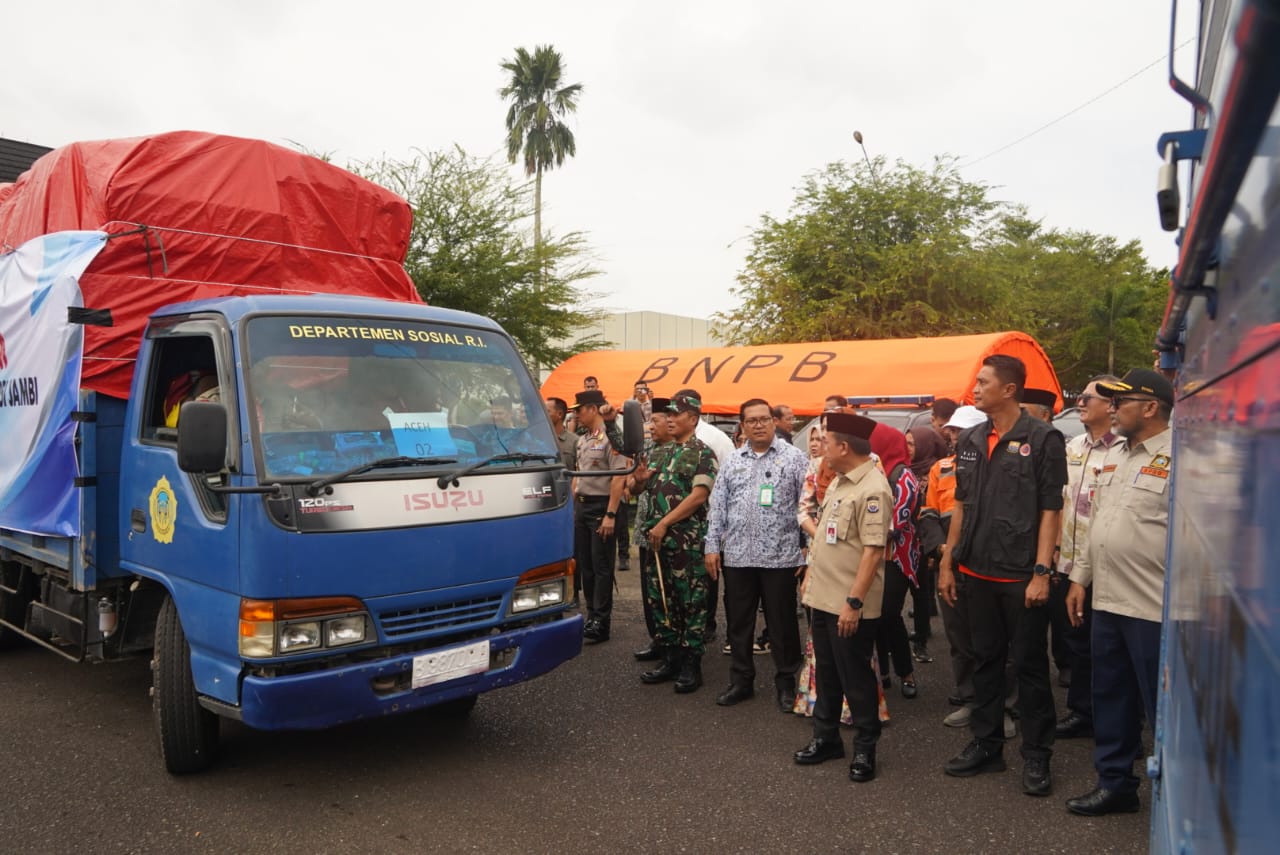 Gubernur Jambi dalam sambutannya juga menyampaikan apresiasi kepada seluruh instansi yang terlibat, baik dari BPBD, TNI, Polri, maupun unsur Forkopimda lainnya yang terus berkoordinasi agar bantuan segera tiba dan dapat dimanfaatkan masyarakat di daerah terdampak.
