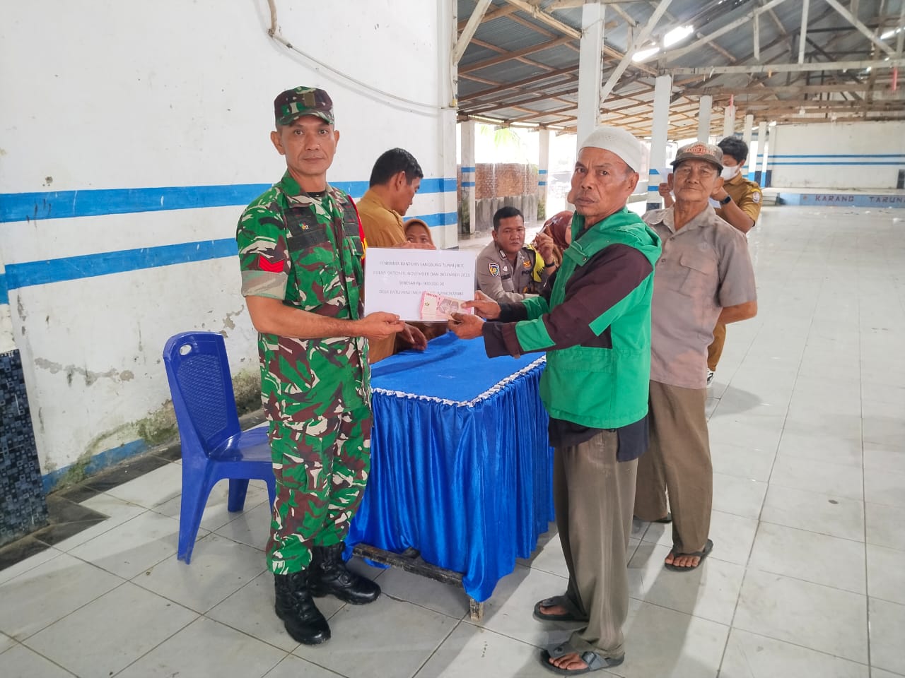 Dalam Kegiatan Penyaluran BLT ini dihadiri oleh, Sekdes, Anggota BPD, Babinsa, Bhabinkamtibmas, Perangkat Desa dan Warga yang menerima BLT-DD.