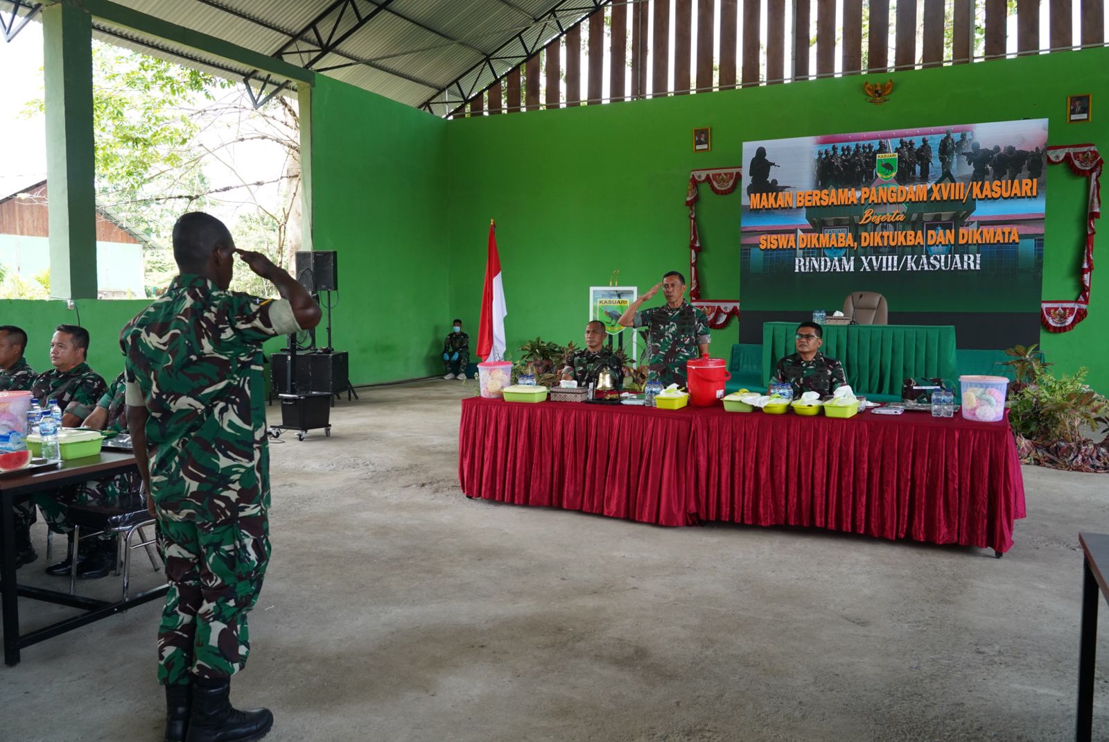Mansel. kasuari18-tniad.mil.id — Pangdam XVIII/Kasuari, Mayjen TNI Christian Kurnianto Tehuteru, sempatkan waktu untuk memberikan semangat, dukungan moril serta meningkatkan kebersamaan antara pimpinan dan prajurit siswa Dikmaba, Diktukba, dan Dikmata di Mako Rindam XVIII/Kasuari pada Senin (22/12/2025),