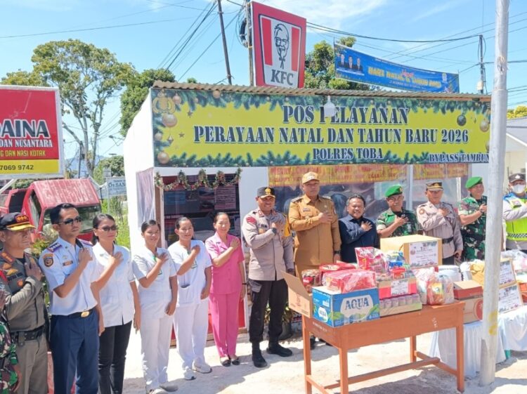 TOBA – Komandan Kodim 0210/TU, Letkol Kav Ronald Tampubolon, SH, M.Han, yang di wakili oleh Pasi Intel Kapten Inf N Tumangger bersama Bupati Toba Effendi Sintong P Napitupulu, Ketua DPRD Kabupaten Toba, Franshendrik Tambunan, dan Kapolres Toba AKBP V.J Parapaga Apputua Napitupulu S.I.K, melaksanakan pengecekan Pos PAM Natal 2025 dan Tahun Baru 2026 di beberapa titik Pos Pengamanan yang ada di wilayah Kabupaten Toba, pada Selasa (23/12/2025)