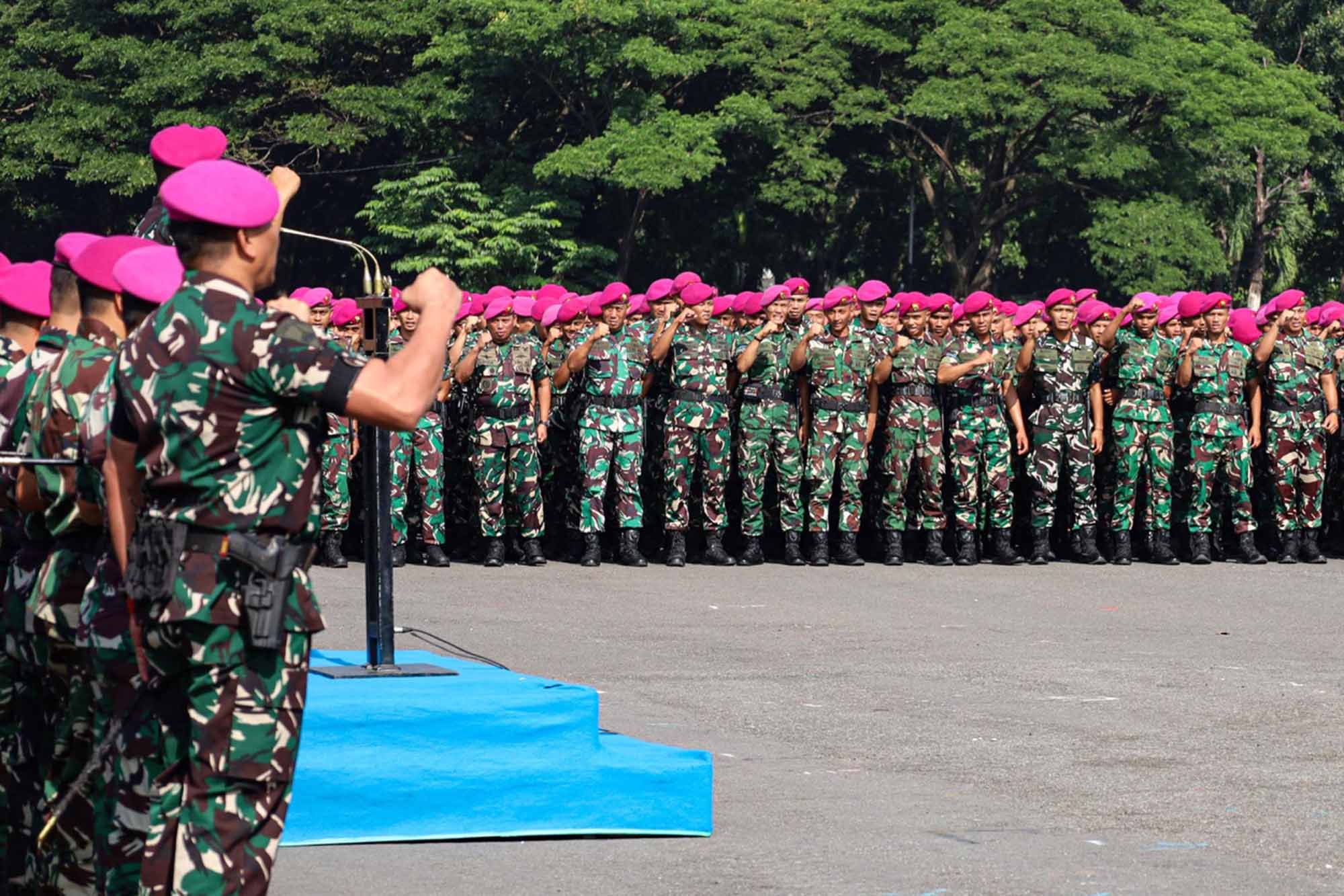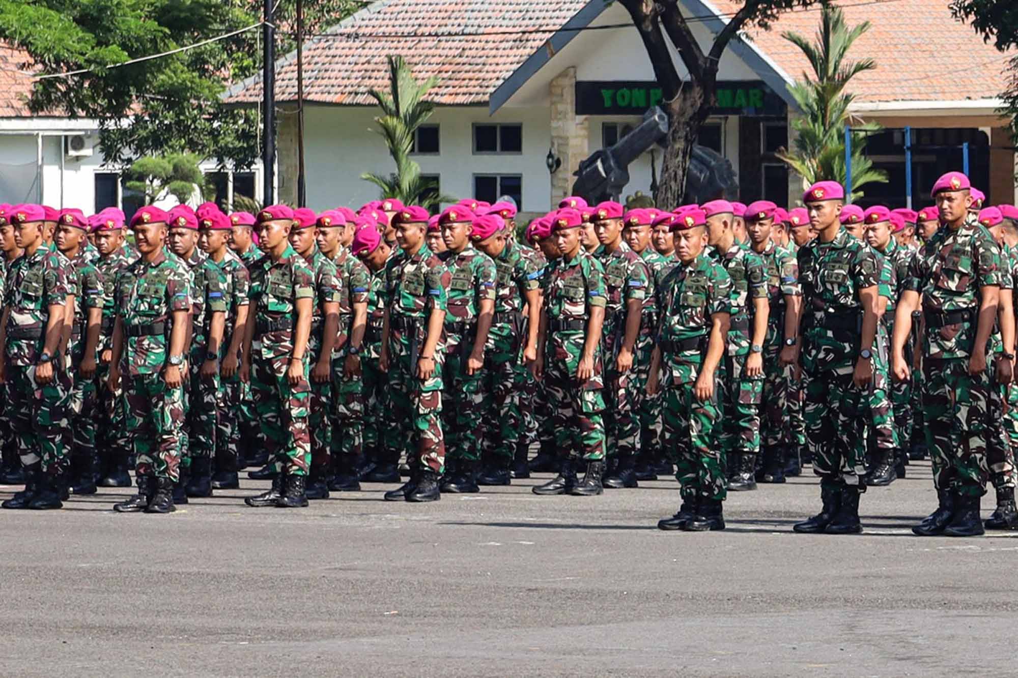 TNI AL, Dispen Kormar (Surabaya). Prajurit Batalyon Infanteri 3 Marinir mengikuti Apel Khusus Komandan Pasmar 2 Mayjen TNI (Mar) Dr. Oni Junianto, S.A.P., M.M., M.Tr.Opsla., di lapangan apel Bhumi Marinir Karangpilang Surabaya, Jawa Timur. Selasa (23/12/2025).
