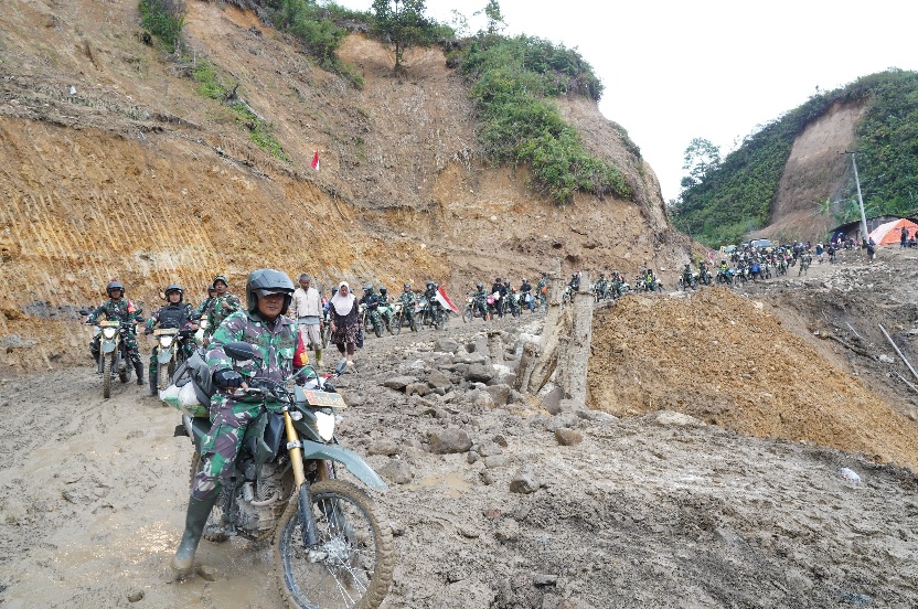 Lhokseumawe, tniad.mil.id — TNI Angkatan Darat mengerahkan ratusan prajurit menggunakan sepeda motor trail untuk menerobos jalur KKA Aceh Utara guna mengantarkan bantuan logistik beras ke wilayah terdampak bencana di Kabupaten Bener Meriah dan Aceh Tengah. Aksi kemanusiaan tersebut berlangsung selama dua hari, Minggu hingga Senin (21–22 Desember 2025).