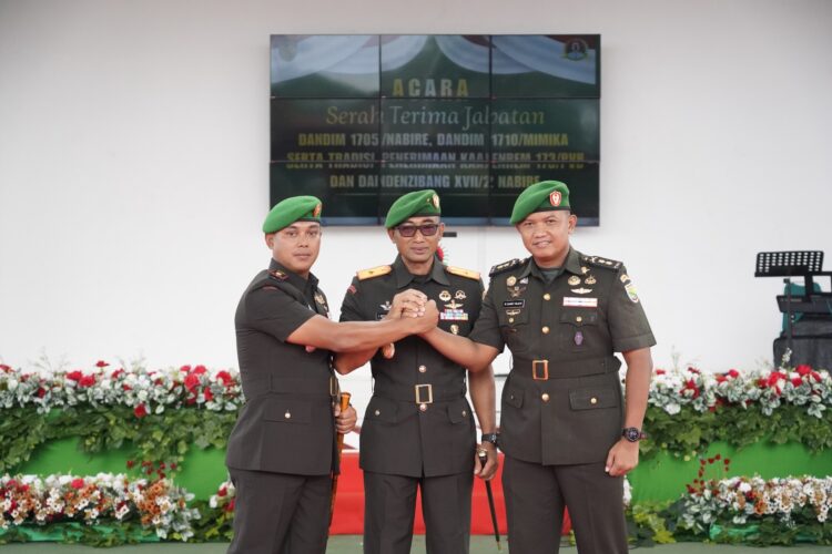 Timika, okebung99.com – Serah Terima Jabatan (Sertijab) Komandan Kodim 1710/Mimika berlangsung khidmat di Markas Korem 173/PVB, Nabire, Senin (22/12/2025). Kegiatan tersebut menandai peralihan kepemimpinan dari Letkol Inf M. Slamet Wijaya, S.Sos., M.Han., M.A., kepada Letkol Inf Redi Dwi Yuda Kurniawan, S.I.P., sebagai Komandan Kodim 1710/Mimika yang baru.