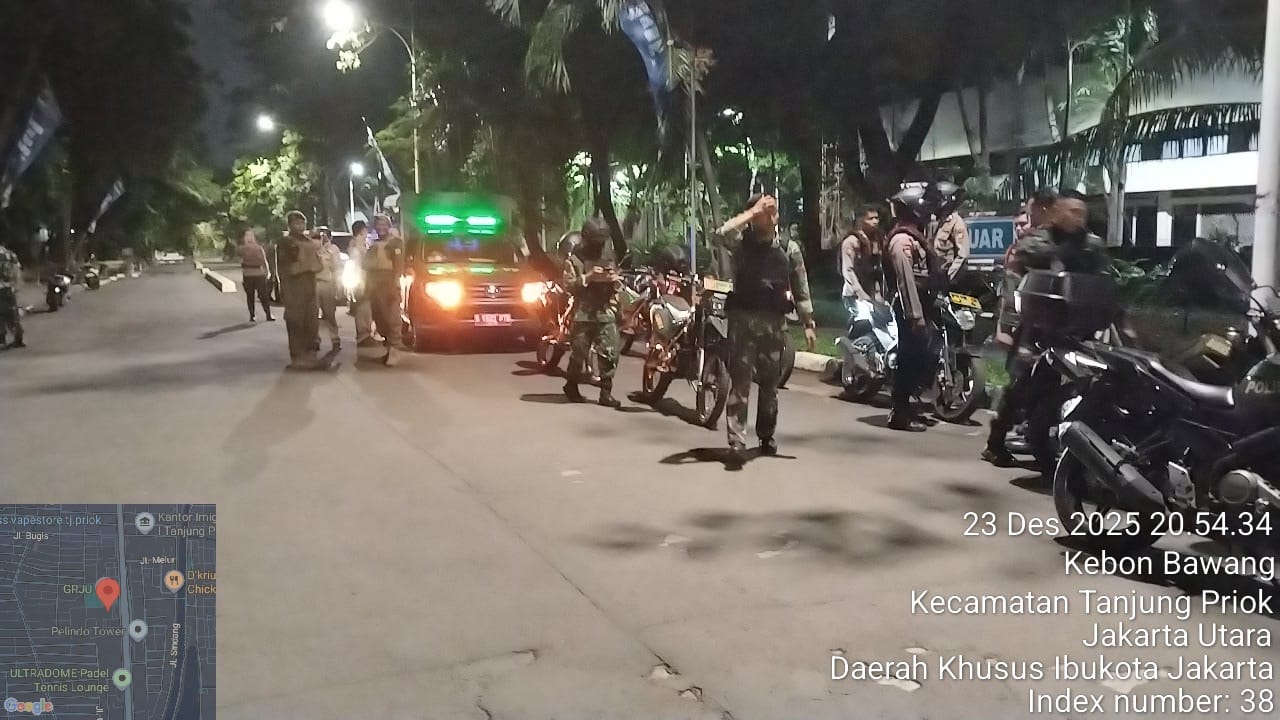Dalam rangka memastikan kesiapan penuh dalam menjaga keamanan dan kenyamanan masyarakat. Menjelang perayaan Natal 2025 dan Tahun Baru 2026,personel Kodim 0502/JU melaksanakan patroli gabungan di wilayah teritorial ,Selasa, 23 Desember 2025 Pukul 20.00 s.d 00.16 Wib.