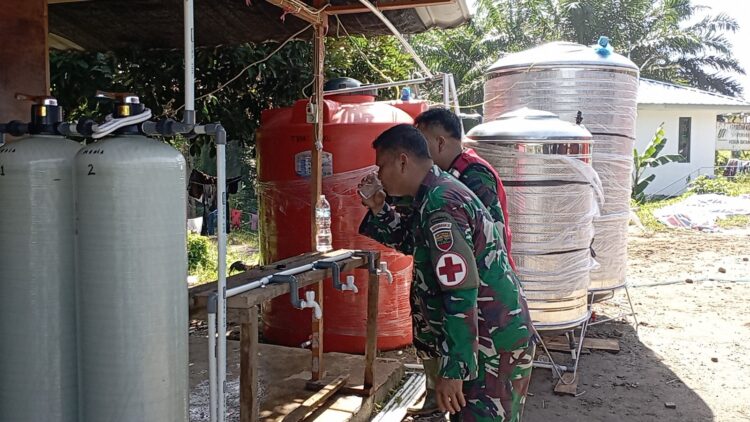 Tapanuli Selatan – Satgas Penanggulangan Bencana Alam (Gulbencal) Yonzipur I/DD bersama Babinsa Koramil 01/Batang Toru memasang instalasi water treatment di Desa Batu Hula, Kecamatan Batang Toru, Kabupaten Tapanuli Selatan, Selasa (23/12/2025). Pemasangan ini dilakukan untuk membantu memenuhi kebutuhan air bersih pengungsi korban banjir bandang yang terjadi beberapa pekan lalu.