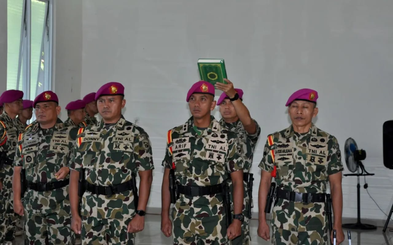 TNI AL. Dispen Kormar (Pasuruan). Komando Latihan Marinir (Kolatmar) melaksanakan upacara serah terima jabatan dan pengukuhan Komandan Pusat Latihan Pertempuran Marinir (Puslatpurmar) 3 Grati, Komandan Puslatpurmar 7 Lampon, serta satuan terkait. Kegiatan berlangsung khidmat di Ruang OYU Pasrat Gunung Sari dan dipimpin langsung oleh Komandan Kolatmar, Brigadir Jenderal TNI (Marinir) Agus Dwi Laksana Putra, selaku Inspektur Upacara.