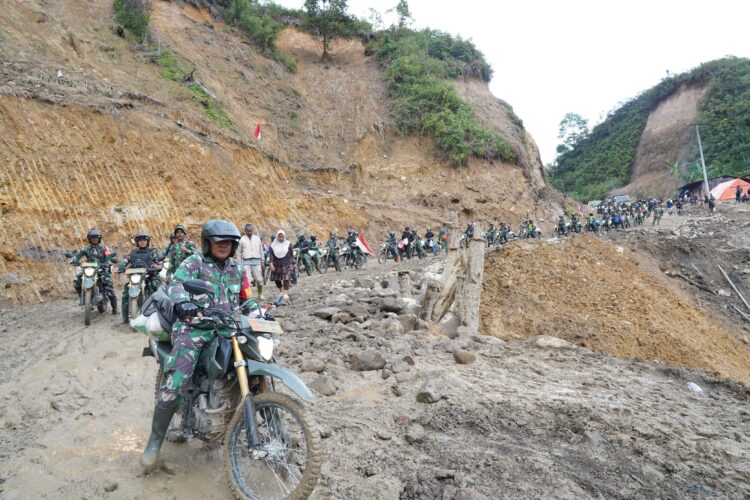 Lhokseumawe, tniad.mil.id — TNI Angkatan Darat mengerahkan ratusan prajurit menggunakan sepeda motor trail untuk menerobos jalur KKA Aceh Utara guna mengantarkan bantuan logistik beras ke wilayah terdampak bencana di Kabupaten Bener Meriah dan Aceh Tengah. Aksi kemanusiaan tersebut berlangsung selama dua hari, Minggu hingga Senin (21–22 Desember 2025).