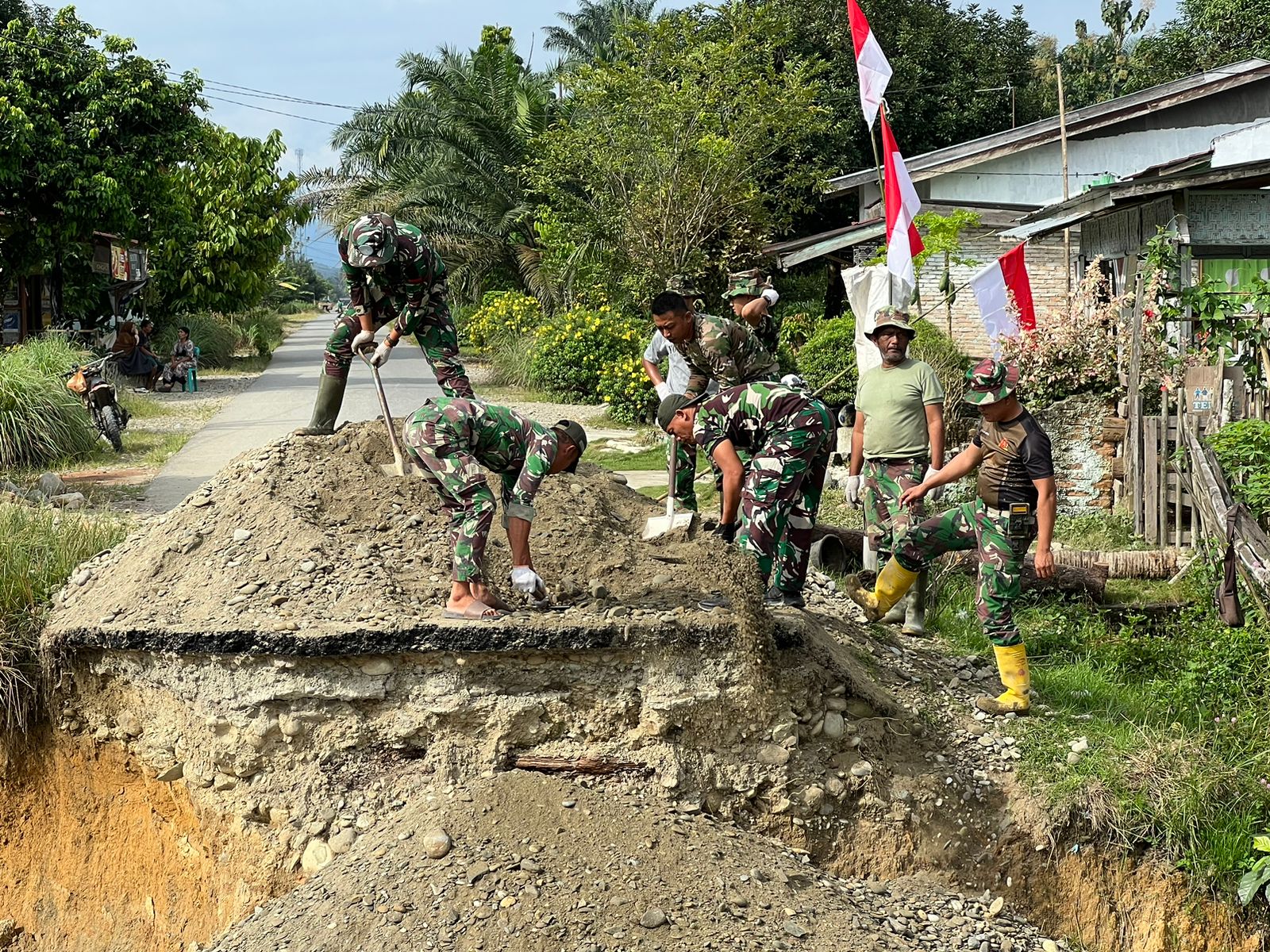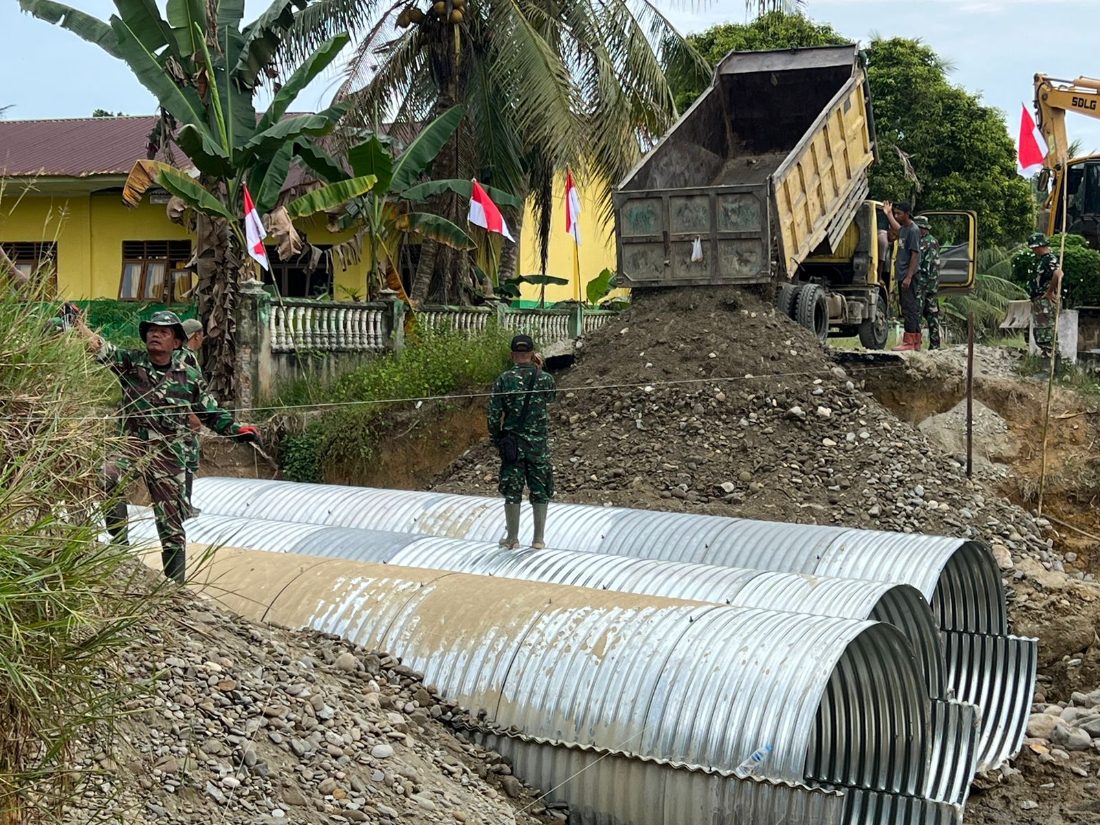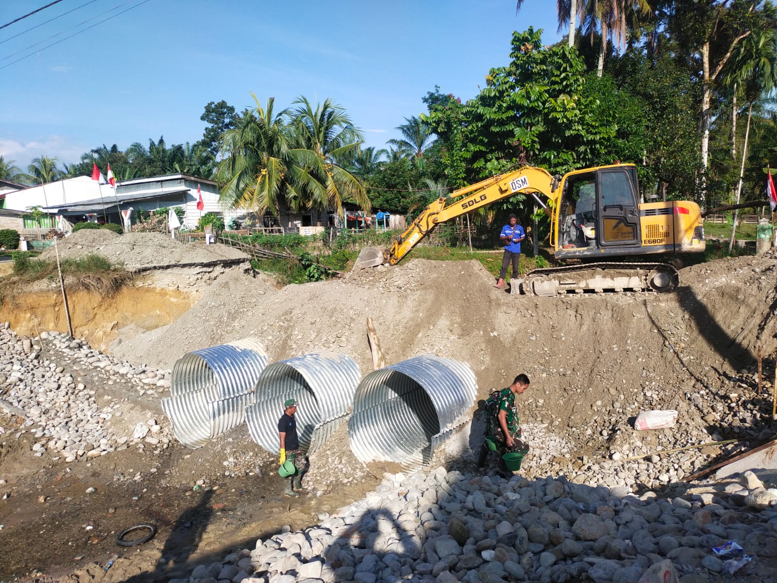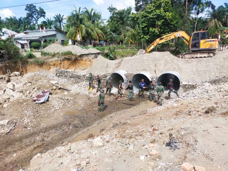 TNI Percepat Pembangunan Jembatan Aramco di Desa Sei Litur Tasik Langkat