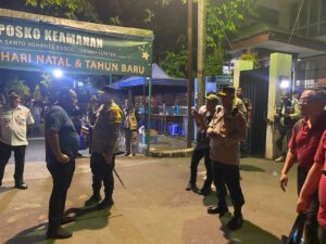 0502/JU Kolonel Inf Dony Gredinand bersama Kapolres Metro Jakarta Utara Kombes Pol Erick Frendrik meninjau pengamanan ibadah malam Natal di Gereja St. Yohanes Bosco Jl. Taman Sunter Indah Blok A.3 No.13-21 RT.005 RW.014 Kel. Sunter Jaya Kec. Tanjung Priok Kota Adm. Jakarta Utara,Rabu 24 Desember 2025 Pukul 21.50 WIB.