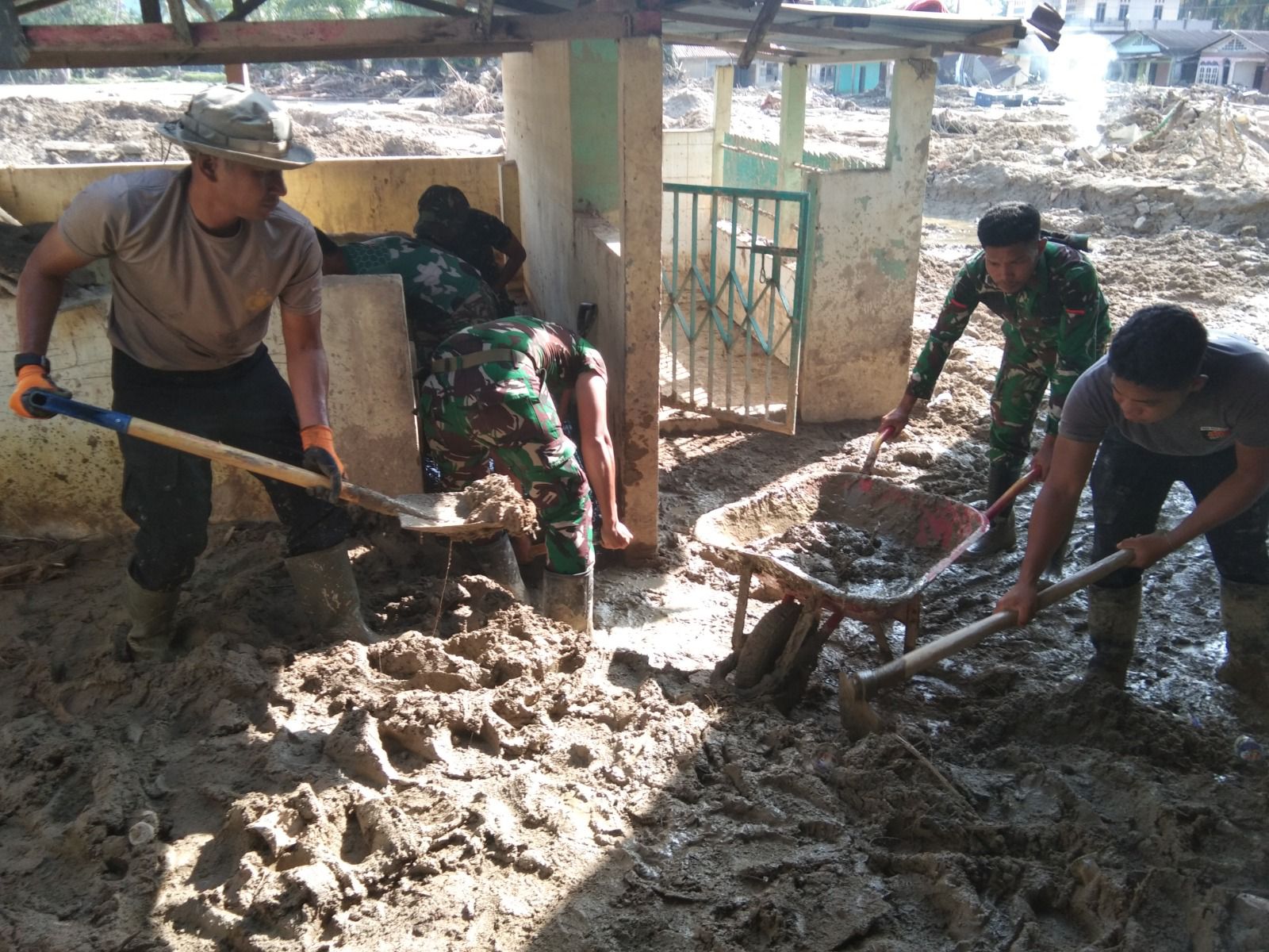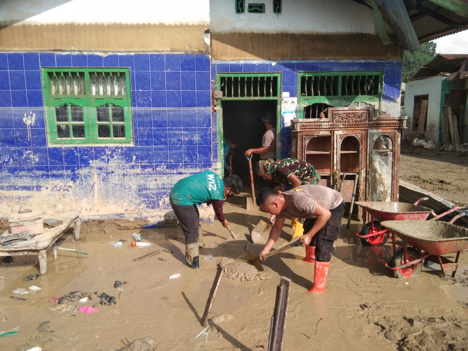 Pembersihan difokuskan pada rumah warga dan fasilitas umum yang masih terdampak lumpur serta material sisa banjir. Personel gabungan TNI-Polri dikerahkan untuk membersihkan area permukiman dan akses masyarakat guna mendukung kembalinya aktivitas warga secara bertahap.