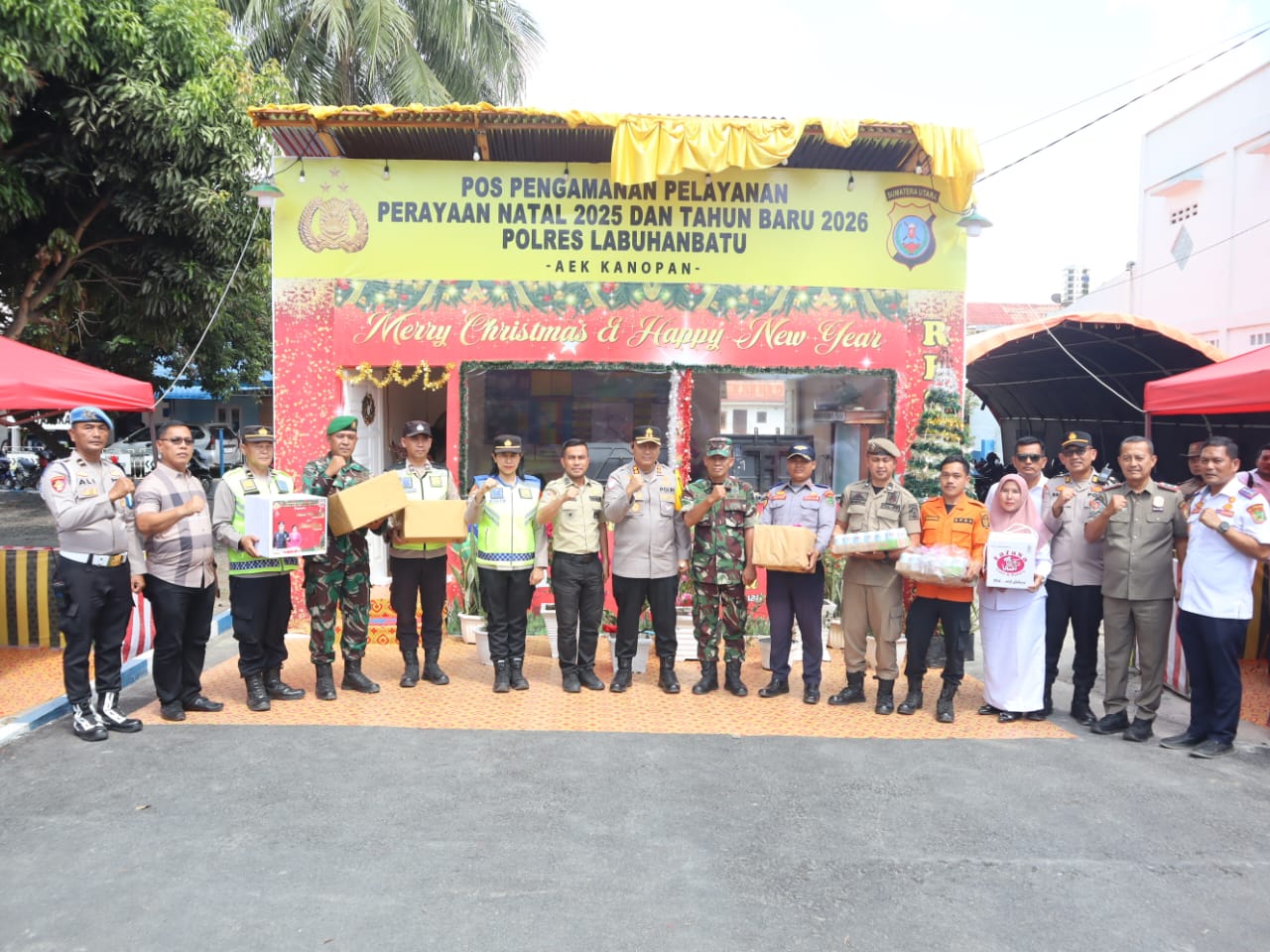 *Labuhanbatu Utara* – Dalam rangka memastikan kesiapsiagaan pengamanan Natal 2025 dan Tahun Baru 2026, Kasdim 0209/Labuhanbatu Mayor Inf S.H. Tanjung mendampingi Kapolres Labuhanbatu AKBP Choky Sentosa Meliala, S.I.K., S.H., M.H., bersama unsur Forkopimda Labura melaksanakan pengecekan langsung ke sejumlah Pos Pengamanan dan Pos Pelayanan Nataru di wilayah Kabupaten Labuhanbatu Utara, Selasa (23/12/2025).