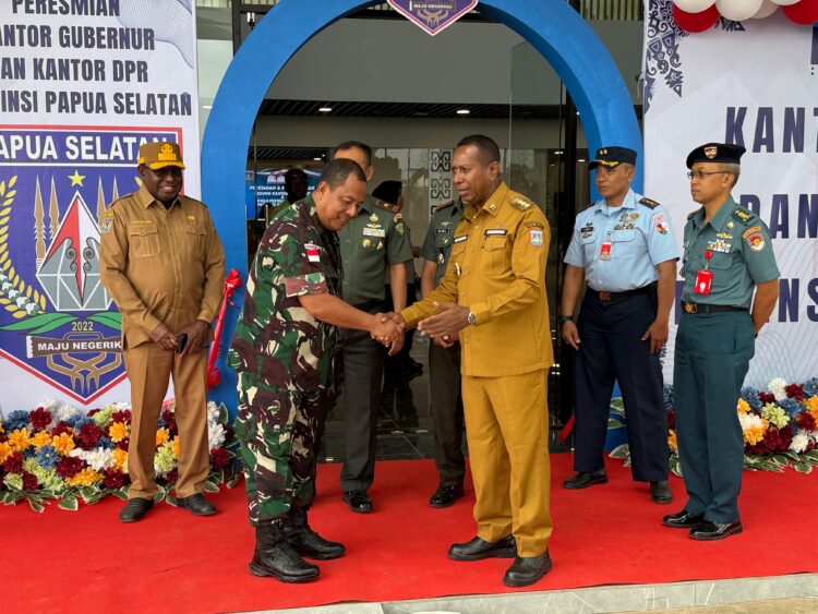 MERAUKE – Kepala Staf Kodam (Kasdam) XXIV/Mandala Trikora, Brigjen TNI Eventius Teddy Danarto, menghadiri upacara peresmian dan pemberkatan Gedung Kantor Gubernur dan Dewan Perwakilan Rakyat (DPR) Provinsi Papua Selatan. Acara yang dilaksanakan di Kota Terpadu Mandiri (KTM) Salor, Kampung Ivimahad, Distrik Kurik, Kabupaten Merauke, pada Senin (05/01/2026), menjadi simbol dimulainya babak baru optimalisasi pelayanan publik di Daerah Otonomi Baru (DOB) tersebut.