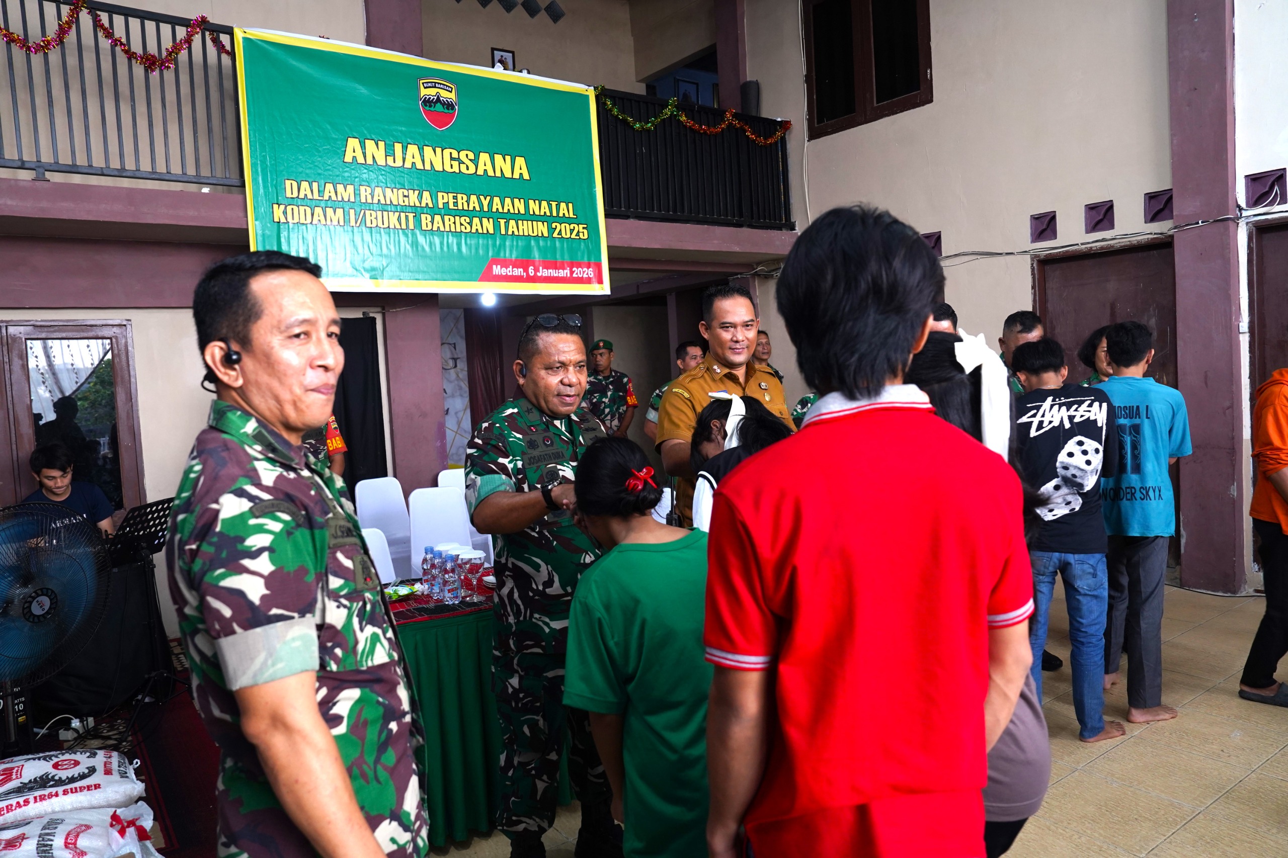 Medan – Inspektur Daerah Militer (Irdam) I/Bukit Barisan Brigjen TNI Josafath M. Robert Duka, S.I.P., memimpin kegiatan anjangsana dalam rangka Perayaan Natal Kodam I/Bukit Barisan Tahun Anggaran 2025 di Panti Asuhan Sukacita Anak Mahkota (Panti Asuhan Kristen Protestan), Jalan Flamboyan I Gang Ulun, Kelurahan Tanjung Selamat, Kecamatan Medan Tuntungan, Kota Medan, Selasa (6/1/2026).