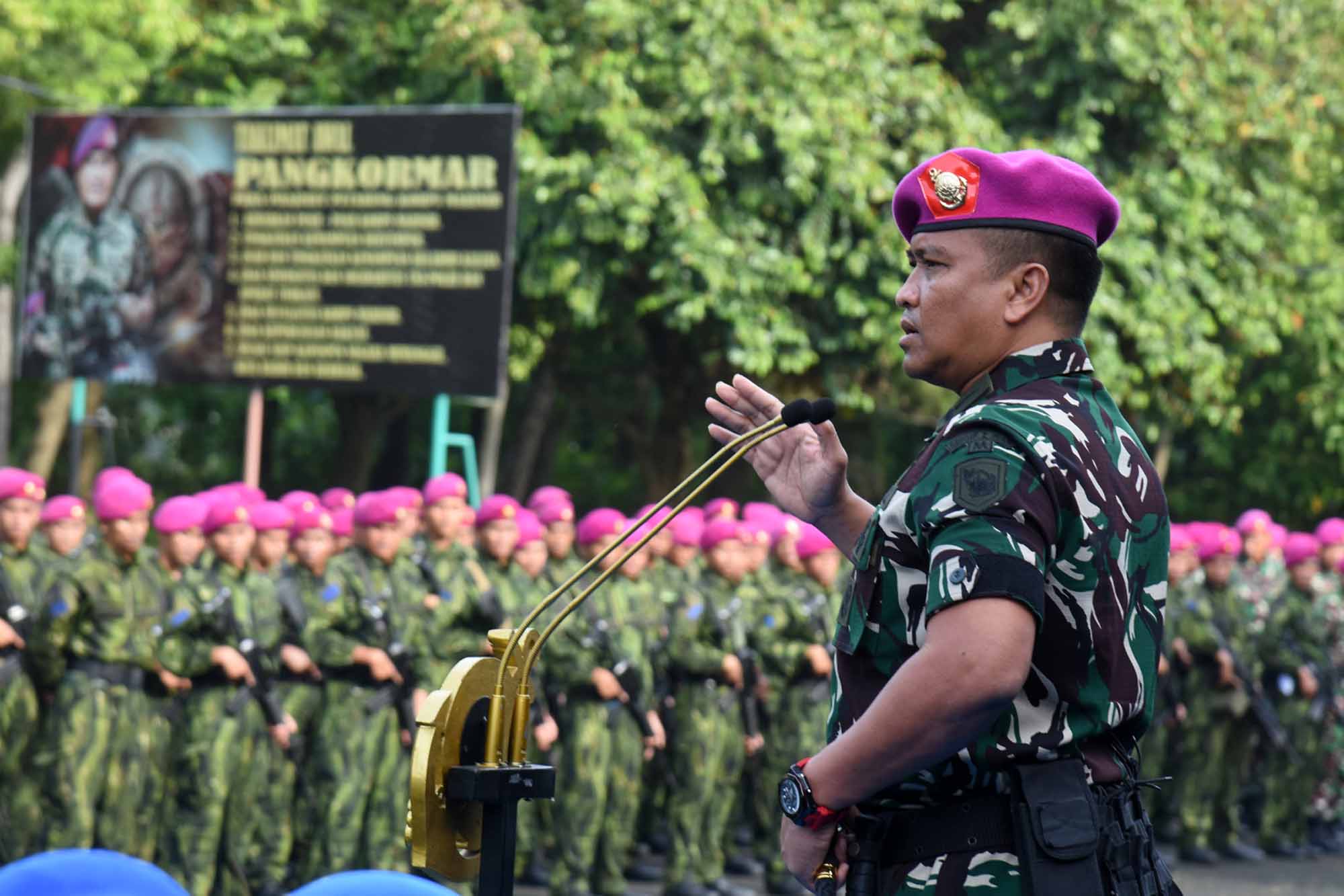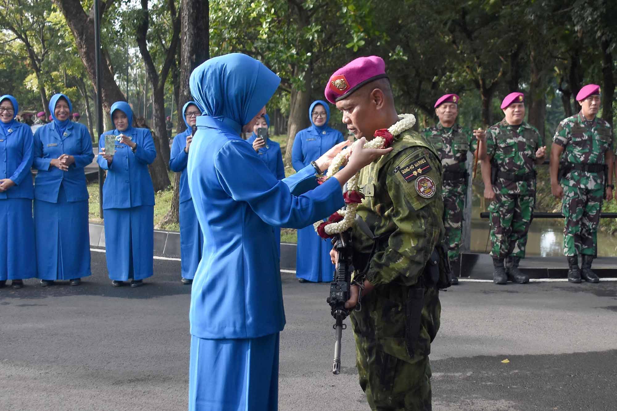 TNI AL, Dispen Kormar (Sidoarjo). Komandan Brigade Infanteri 2 Marinir (Brigif 2 Marinir) Kolonel Marinir Aang Andy Warta, M.Tr.Opsla., menyambut dengan hangat dan kebanggaan kepulangan seluruh prajurit petarung Yonif 1 Marinir usai menuntaskan tugas Pengamanan Perbatasan (Pamtas) Mobile RI–PNG Gobang III Tahun Anggaran 2025. Kegiatan penyambutan berlangsung di Lapangan Rencong Sakti Kesatrian Marinir R. Suhadi, Gedangan, Sidoarjo, Jawa Timur, Selasa (06/01/2026).
