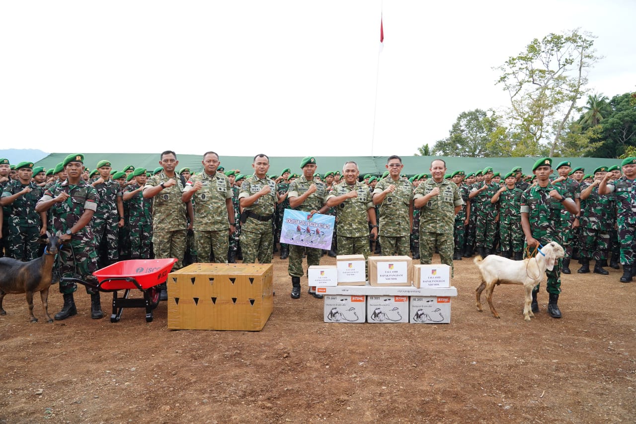Pangdam XIII/Merdeka meninjau secara langsung kondisi personel, sarana dan prasarana pendukung, serta kesiapan prajurit Yonif TP 868/Bantong Sakti dalam melaksanakan tugas teritorial dan pembinaan wilayah.