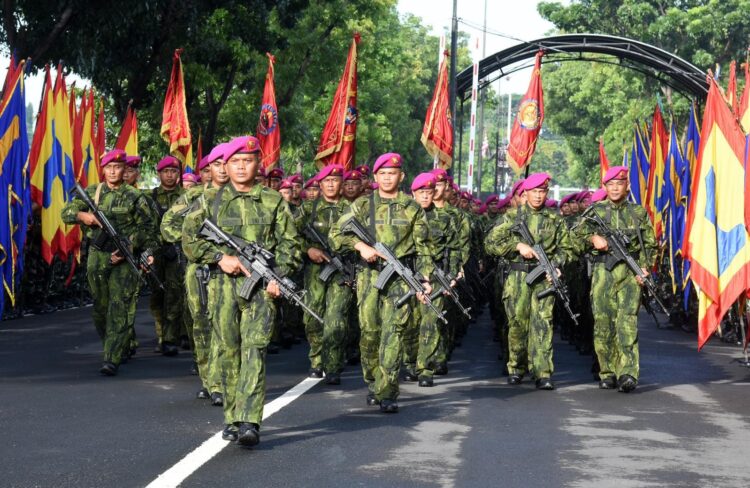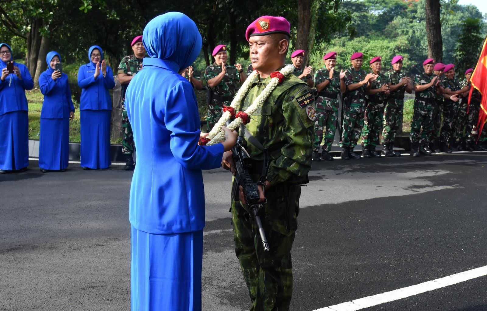 TNI AL, Dispen Kormar (Sidoarjo). Setelah satu tahun melaksanakan tugas Pengamanan Perbatasan (Pamtas) Mobile RI–PNG Gobang III Tahun 2025, prajurit “Buaya Petarung” Batalyon Infanteri 1 Marinir kembali ke satuan dengan penuh kebanggaan. Kepulangan prajurit yang dipimpin langsung oleh Komandan Yonif 1 Marinir Letkol Marinir Siswanto, M.Tr.Opsla., tersebut disambut secara resmi oleh Komandan Brigade Infanteri 2 Marinir Kolonel Marinir Aang Andy Warta, M.Tr.Opsla., di Lapangan Rencong Sakti, Kesatrian Marinir R. Suhadi, Gedangan, Sidoarjo, Jawa Timur, Selasa (6/1/2025).
