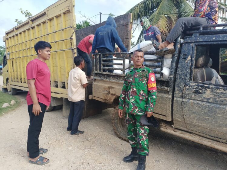 Aceh Timur – Babinsa Koramil 12/Sry Kodim 0104/Aceh Timur, Serka Ajuan Rambe, melaksanakan kegiatan pendampingan penyaluran bantuan beras dari Bulog kepada masyarakat di 13 desa wilayah Kecamatan Sungai Raya, Kabupaten Aceh Timur.Selasa(6/1/2026).