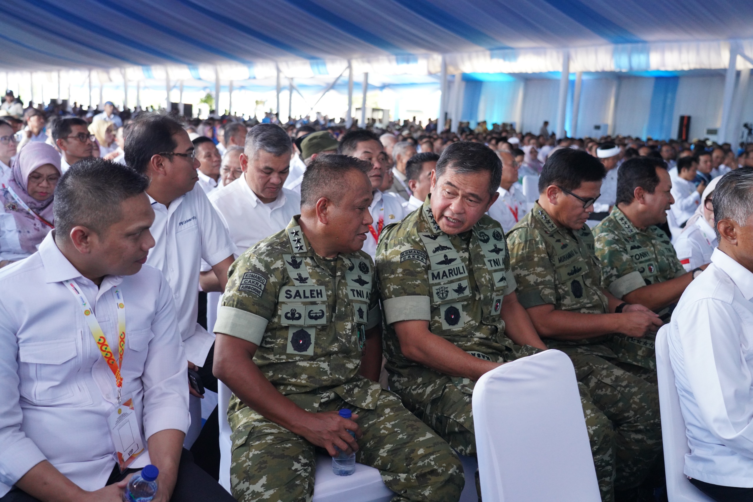 Acara tersebut juga dihadiri jajaran menteri dan wakil menteri Kabinet Merah Putih, pimpinan lembaga negara, Jaksa Agung, Kapolri, Wakil Panglima TNI, para Kepala Staf Angkatan, serta jajaran pimpinan BUMN yang terlibat langsung dalam program swasembada pangan nasional.