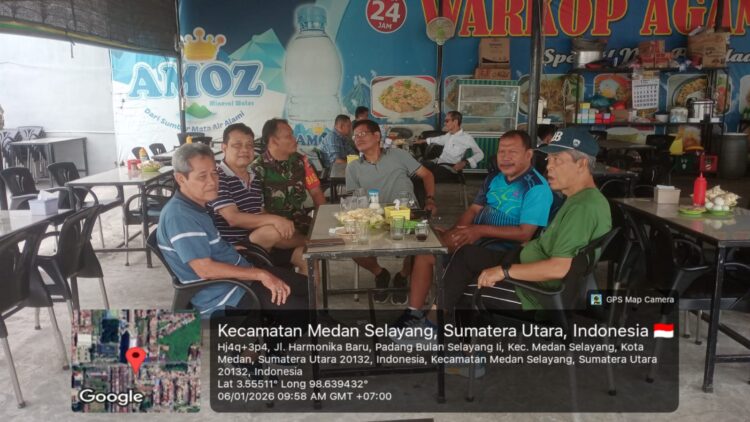 Medan Selayang – Babinsa Koramil 07/MT Sertu JF Simangunsong Melaksanakan Komsos (Komunikasi sosial) dengan tokoh Masyarakat di Jln Harmonika lingkungan ll Bpk Muslim di Kelurahan Pb Selayang, kecamatan Medan Selayang, Kota Medan, Selasa (06/01/2026).