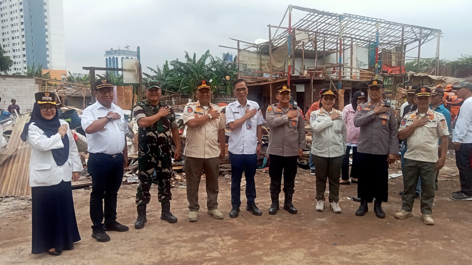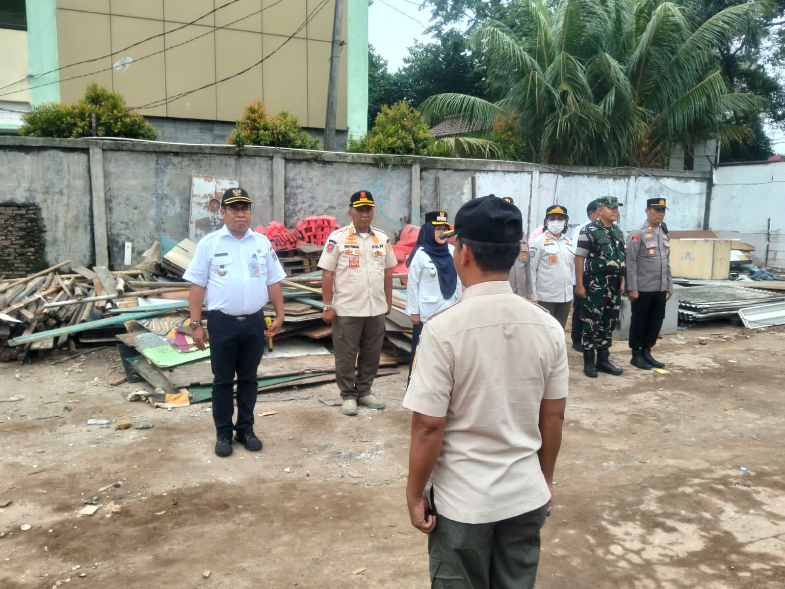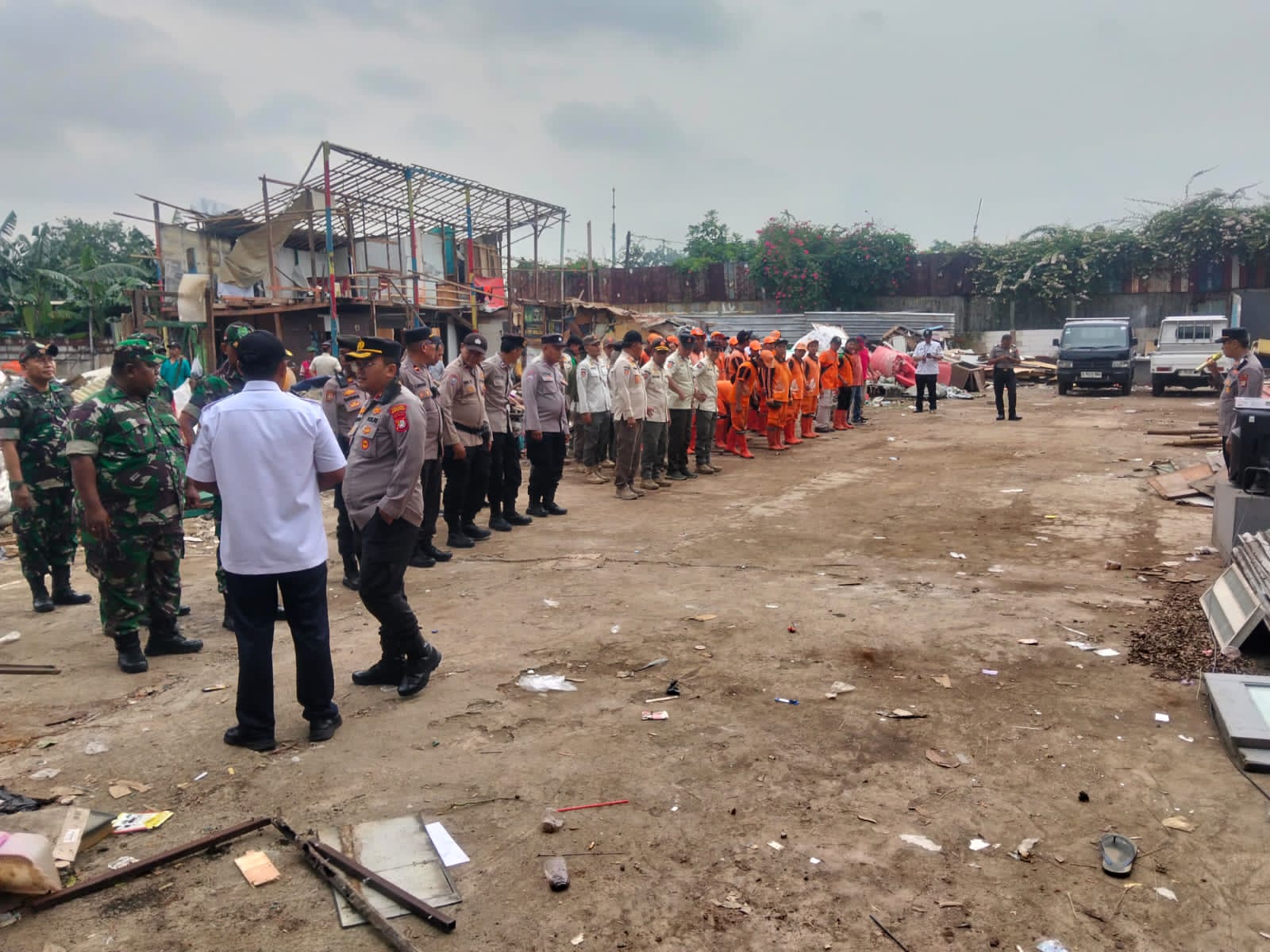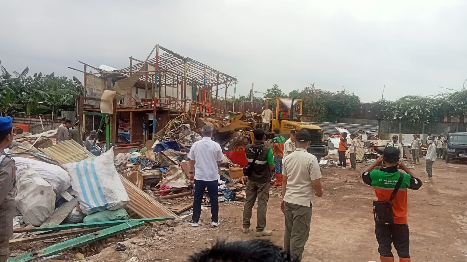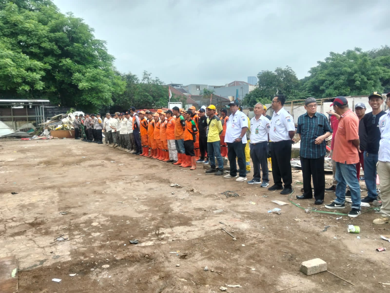 Serma Besus,persone Polsek 12 orang dipimpin AKP Bartoyo,petugas Satpol PP 40 orang dipimpin Heri Purnama,pegawai Dishub 5 orang dipimpin Sukisno,dari Dinas Lingkungan Hidup 4 orang dipimpin Rusli,dari Bina Marga 5 orang pimpinan Sugi,PLN 7 orang pimpinan Umar,PPSU 30 orang pimpinan Agus Khamil dan Warga 9 orang pimpinan Ali Siregar.