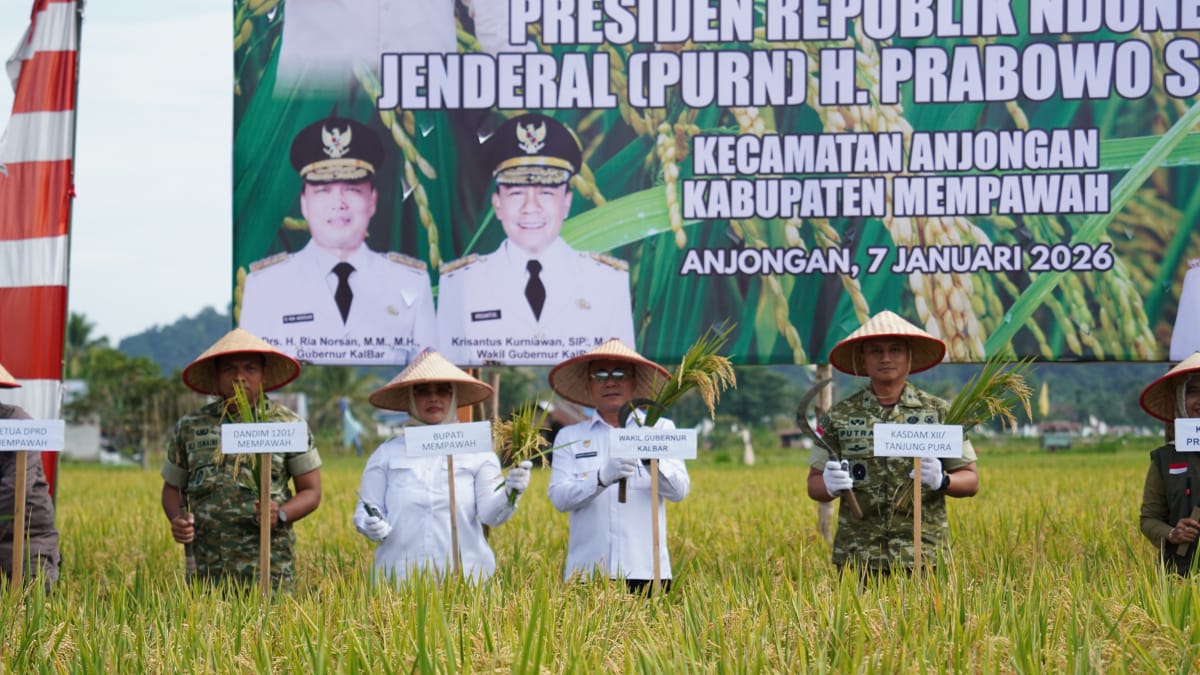 Mempawah – Kabupaten Mempawah menjadi salah satu titik sentral pembuktian kedaulatan pangan nasional. Kepala Staf Kodam (Kasdam) XII/Tanjungpura, Brigjen TNI Putra Widyawinaya, S.H., M.P.M., ikuti langsung kegiatan Panen Raya di Kelurahan Anjungan Melancar, Kabupaten Mempawah, Rabu (7/1/2026).