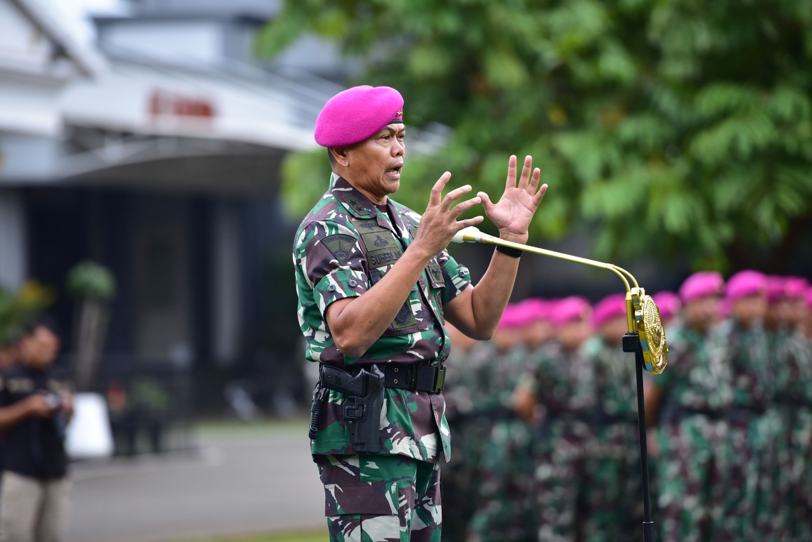 Dispen Kormar TNI Angkatan Laut (Jakarta).* Kepala Staf Korps Marinir (Kas Kormar) Mayor Jenderal TNI (Mar) Suherlan, S.E., M.M., M.Sc., CHRMP., memimpin Apel Khusus Prajurit dan PNS Mako Kormar yang digelar di Lapangan Hijau Mako Kormar, Kesatrian Marinir Jenderal KKO Ali Sadikin, Kwitang, Jakarta Pusat, Kamis (08/01/2026).