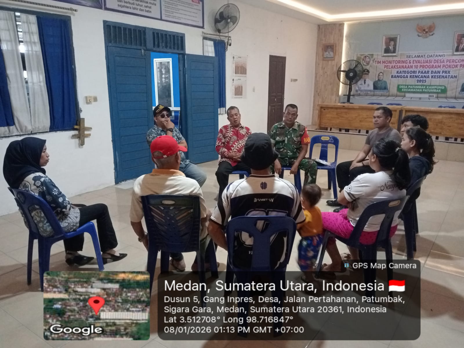 Medan – Babinsa Desa Patumbak kampung Serma Ar siregar melaksanakan kegiatan rutin, yang merupakan salah satu bagian tugas pokoknya yaitu melaksanakan interaksi secara langsung dengan Seklur dan perangkat Desa Patumbak kampung Kecamatan Patumbak kamis (8 /1/ 2026).