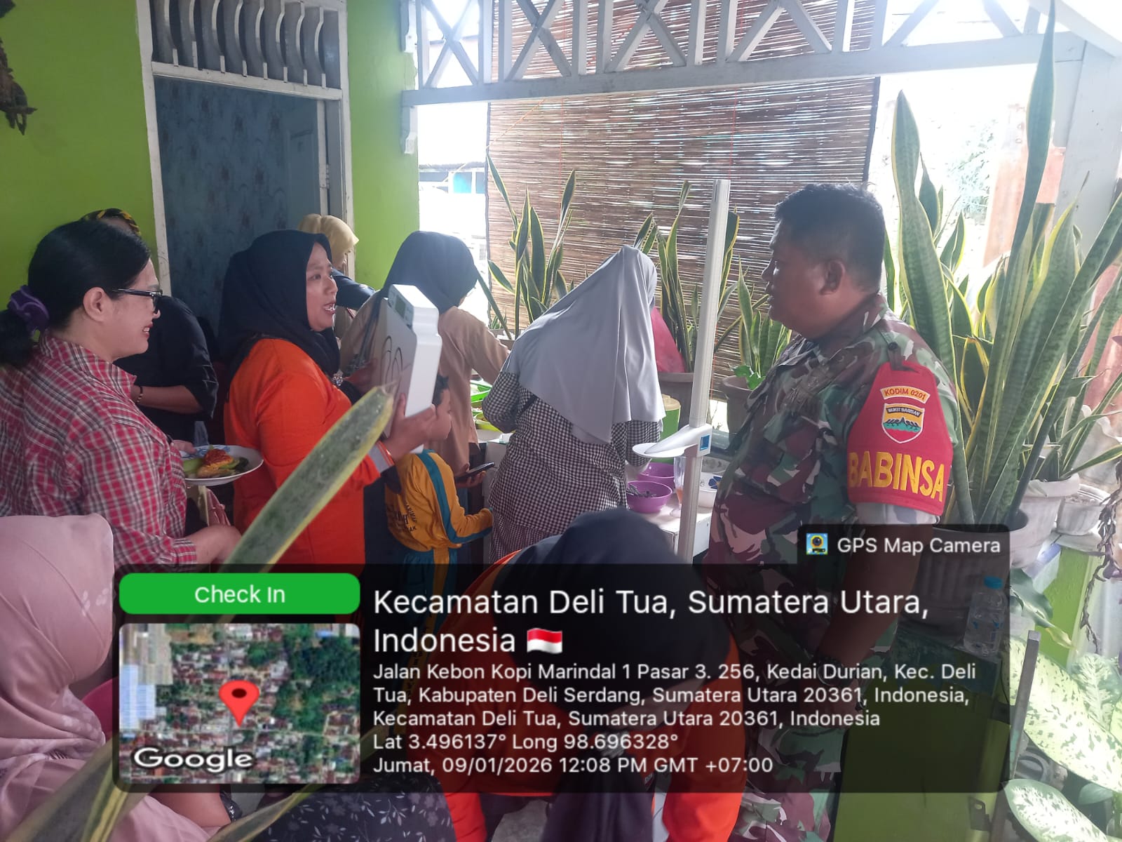 Babinsa Koramil 0201-15/DT Sertu Muliadi melaksanakan kegiatan komsos bersama ibu-ibu dan Kader kesehatan warga binaan dan dari them kesehatan puskesmas patumbsk di desa marendal 1