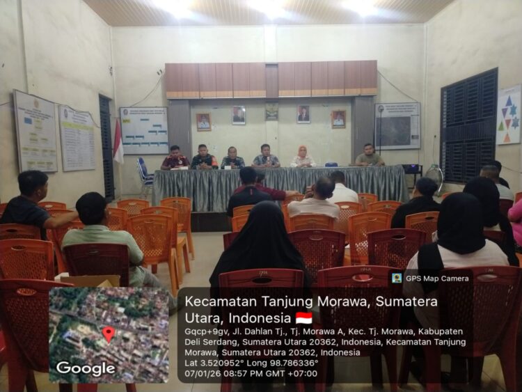 Tanjung Morawa – Babinsa Desa Tanjung Morawa A, Serda G. Manullang, anggota Koramil 0201-16/Tanjung Morawa Kodim 0201/Medan, menghadiri kegiatan Musyawarah Perencanaan Pembangunan (Musrenbang) Desa Tanjung Morawa A yang digelar di Aula Kantor Desa Tanjung Morawa A, Kecamatan Tanjung Morawa, Kabupaten Deli Serdang, pada Rabu malam (07/01/2026) pukul 20.30 WIB hingga selesai.
