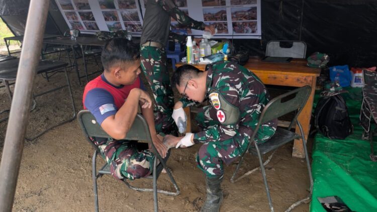 Tapanuli Selatan – Satgas Pos Bantuan Kesehatan Daerah Militer (Posbankes) Kodam I/Bukit Barisan melaksanakan pemeriksaan kesehatan bagi masyarakat terdampak banjir bandang di Desa Aek Ngadol, Kecamatan Batang Toru, Kabupaten Tapanuli Selatan, Sumatera Utara, Kamis (8/1/2026). Kegiatan Pelayanan Kesehatan ini tim medis langsung mendatangi rumah- rumah warga warga yang mengalami gangguan kesehatan pascabencana alam.