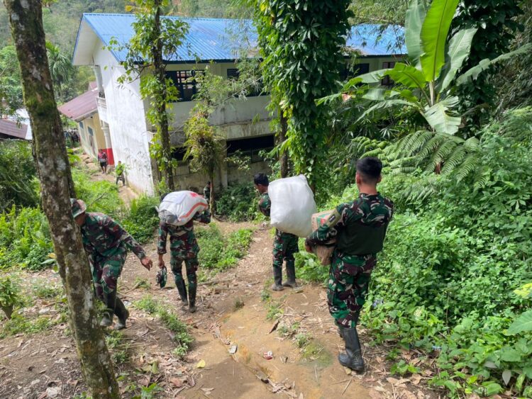 Tapanuli Tengah — Personel Satgas Gulbencal Yonif 122/TS melaksanakan kegiatan pengedropan dan pembagian logistik kepada masyarakat terdampak bencana di Desa Nauli 2, Kecamatan Sitahuis, Kabupaten Tapanuli Tengah, Jumat (9/1/2026).