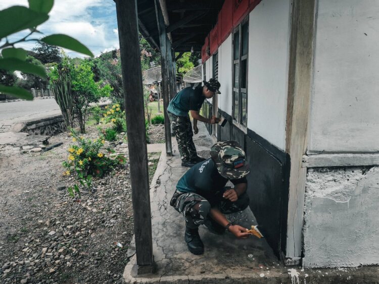 OKEBUNG | Satgas Pamtas RI–RDTL Sektor Barat Yonarhanud 2 Kostrad Pos Wini melaksanakan kegiatan Karya Bakti dengan melakukan pengecatan rumah warga di Desa Wini, Kecamatan Insana Utara, Kabupaten Timor Tengah Utara (TTU), Kamis (8/1/2026).