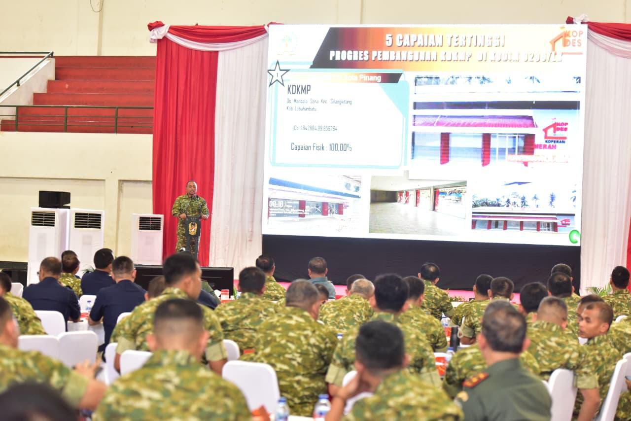 Kegiatan diawali dengan pengambilan data kemampuan para Komandan Satuan, kemudian dilanjutkan dengan pemaparan capaian program KDKMP masing-masing wilayah. Dalam paparannya, Dandim 0209/Labuhanbatu menjelaskan berbagai tahapan pembangunan yang telah berjalan, sekaligus komitmen Kodim 0209/LB dalam mendukung program strategis TNI yang berorientasi pada peningkatan kesejahteraan masyarakat.